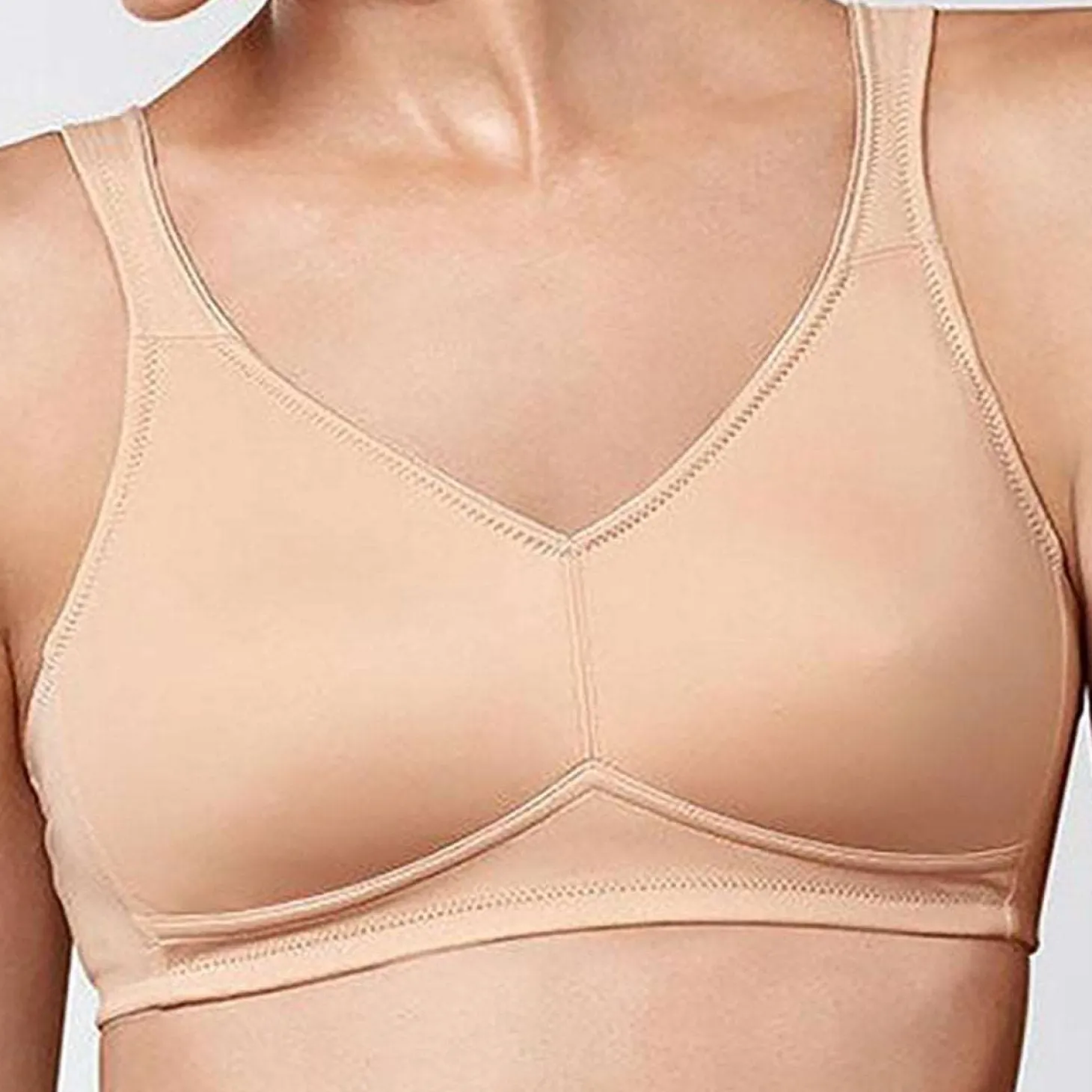 - Design: Seamless, wireless cups with microfiber lining with pockets for prosthesis breast forms, not included. Seamless sides for a smooth look under clothes. The soft fabric is moisture-wicking for cool comfort. Elastic along top and bottom of sides and back for a custom fit. Wide, non-stretch straps connect to elastic straps that adjust in the back with coated metal hardware. Cushioned back hook-and-eye closure provides a comfortable fit.