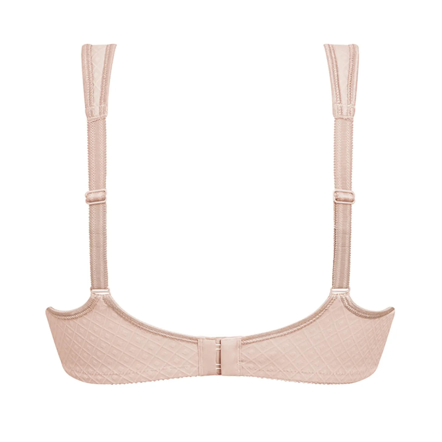 - Design: Comfort bra style with seamless cups and textured microfiber fabric. Molded cups with microfiber pockets for a seamless look under clothing. Plush hook & eye back closure: 2 rows: 32–40 AA, A; 32–38 B; 34–36 C, D, DD (E) 3 rows: 42 AA, A; 40–42 B; 38–40 C, D; 38 DD (E). Padded, adjustable straps.