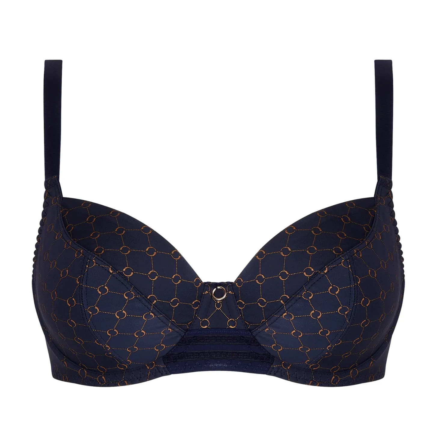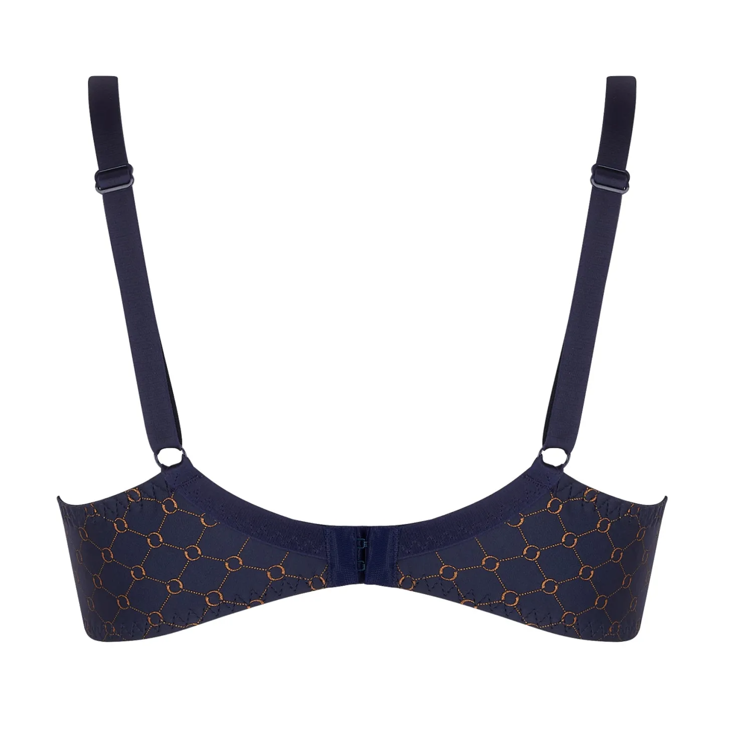 Elevate your everyday essentials with this striking navy-and-copper bra – where modern pattern meets luxurious comfort.