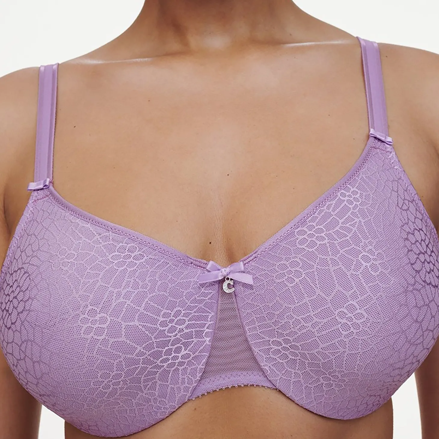 - Design: Experience effortless elegance and unmatched support with the Chantelle C Magnifique Minimizer Full Cup Bra in Lavender. Designed for full-bust comfort, this bra features a smoothing, floral-patterned stretch lace that subtly reduces bust volume while maintaining a naturally rounded shape. The underwire cups offer lift without bulk, and the wide, adjustable straps ensure lasting comfort throughout the day. Ideal for everyday wear, this piece blends beauty and functionality in a modern, feminine hue.