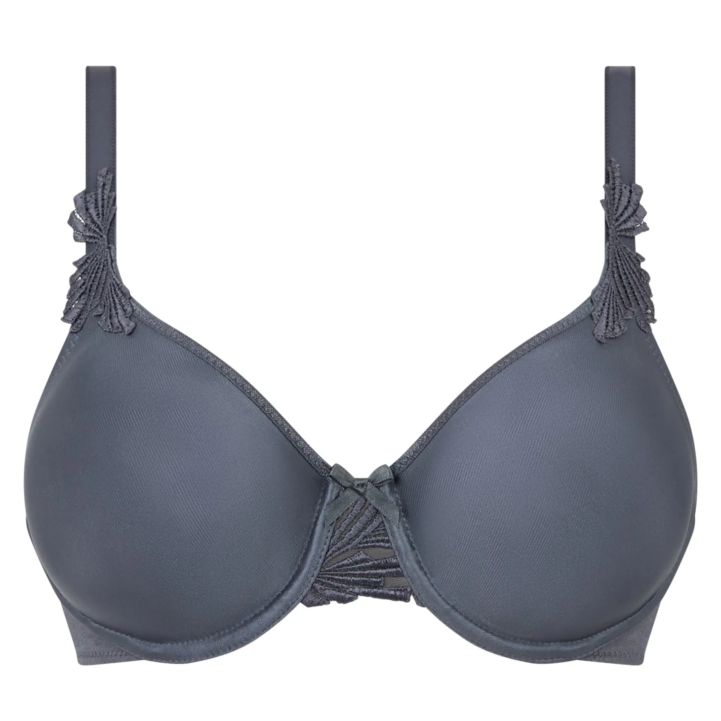 - Design: Full cup seamless bra with Guipure lace applique on straps and bow detail. Centered straps prevent them from falling off shoulders.