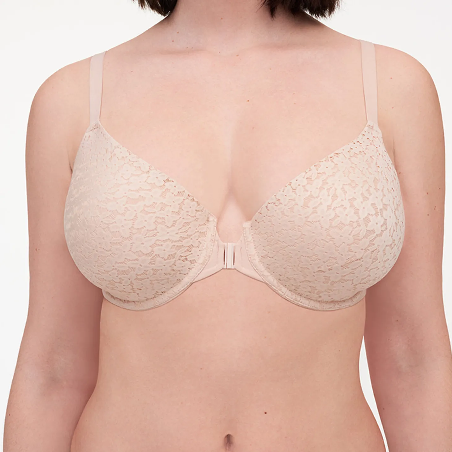 Combining full support with unparalleled comfort, the Chantelle Norah Front Closure Bra will be your new go-to bra. The tall, buttery soft band provides a smoothing effect through the back. The floral details throughout the cup create a unique update to your everyday seamless bra while remaining invisible under any top.