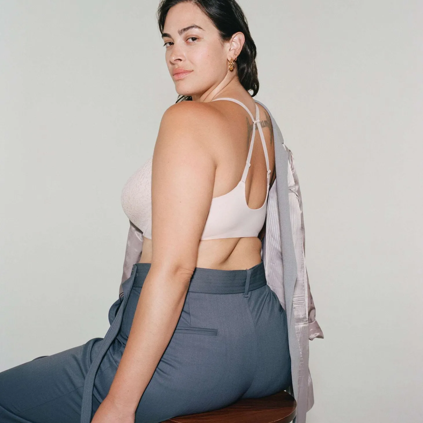 - Design: Ease of fit with a front closure. Flat floral pattern on the cup won’t show through the tops. Tall back with seamless finishes for a smoothing effect and optimal support. Innovative cup construction with full, seamless unlined comfort. Deep V neckline with a front opening that fully contains the bust. Enclosed seams at the neckline and underarms. Fully adjustable straps with J-hook at back for convertible versatility. OEKO-TEX® Standard 100 certified.