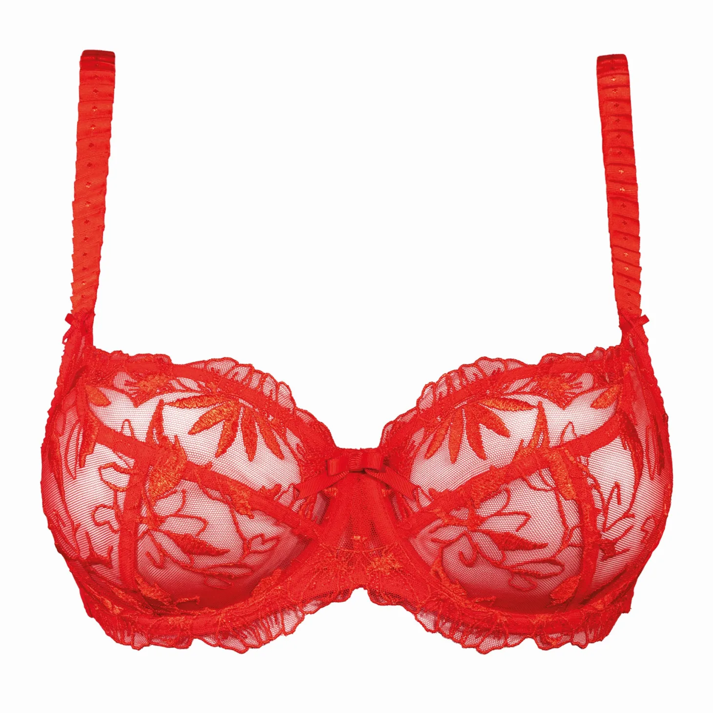 - Design: The soft transparency of the embroidered petals on this underwired demi-cup bra offers lightness and elegance. Support is not lacking with this 3-part bra cup to shape the breasts, for a push-up effect. A real seduction asset in its flamboyant red colourway: Poppy.