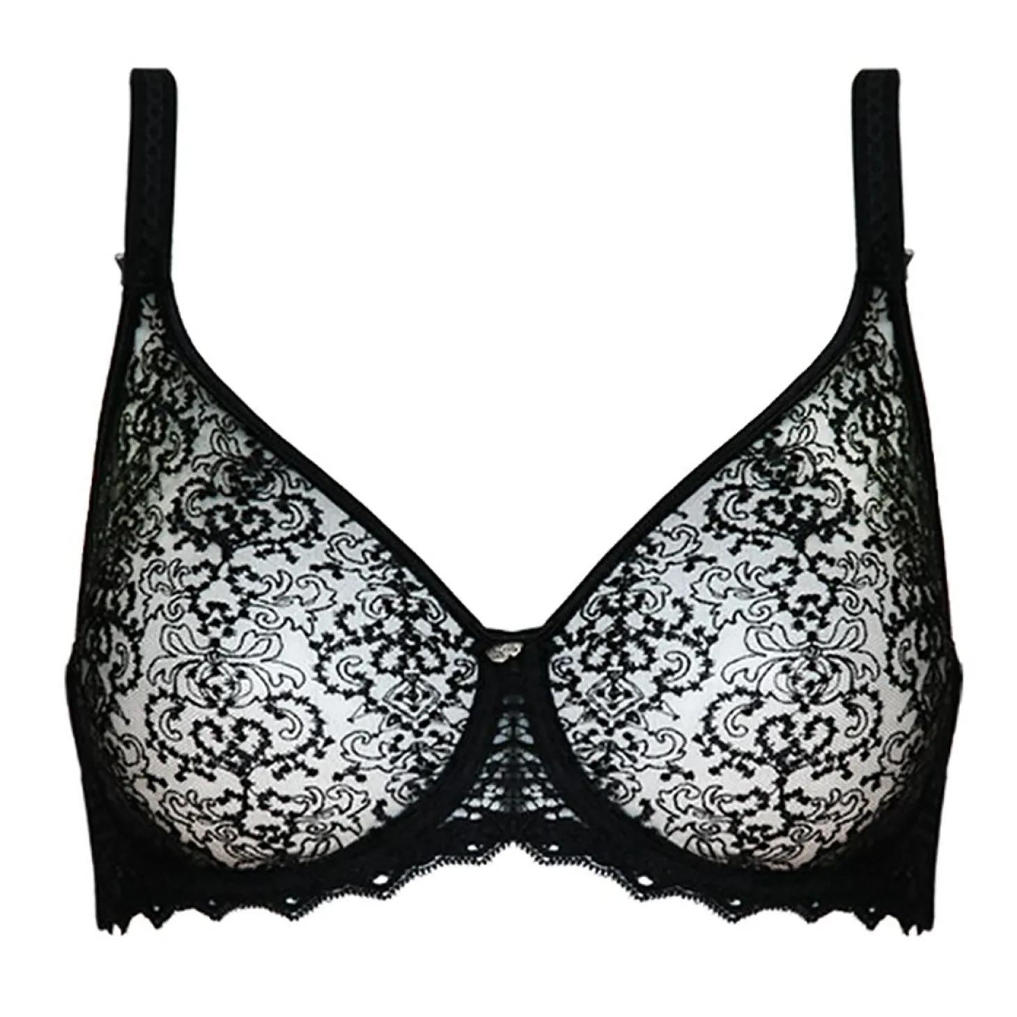 Taking years to develop and perfect, the Cassiopee provides stunning, round support all while boasting seamlessness and invisibility. Delicate mesh borrows its strength from intricate embroidery and satin trimmings. Micro sheer bows and detailed stitching on Cassiopee’s wide straps are beautiful details to this delicate and truly elegant bra.