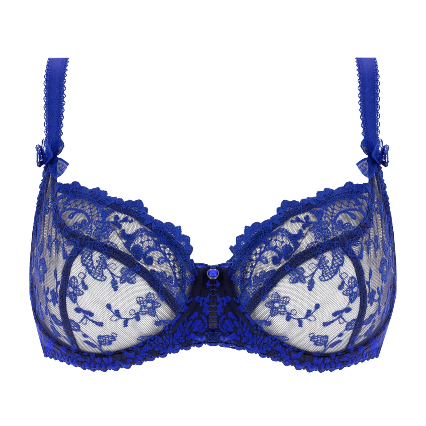 Empreinte Gaby Balcony Bra offers reassuring support and lavish decorative detailing. Velvet is highlighted in a rich Sapphire Blue.