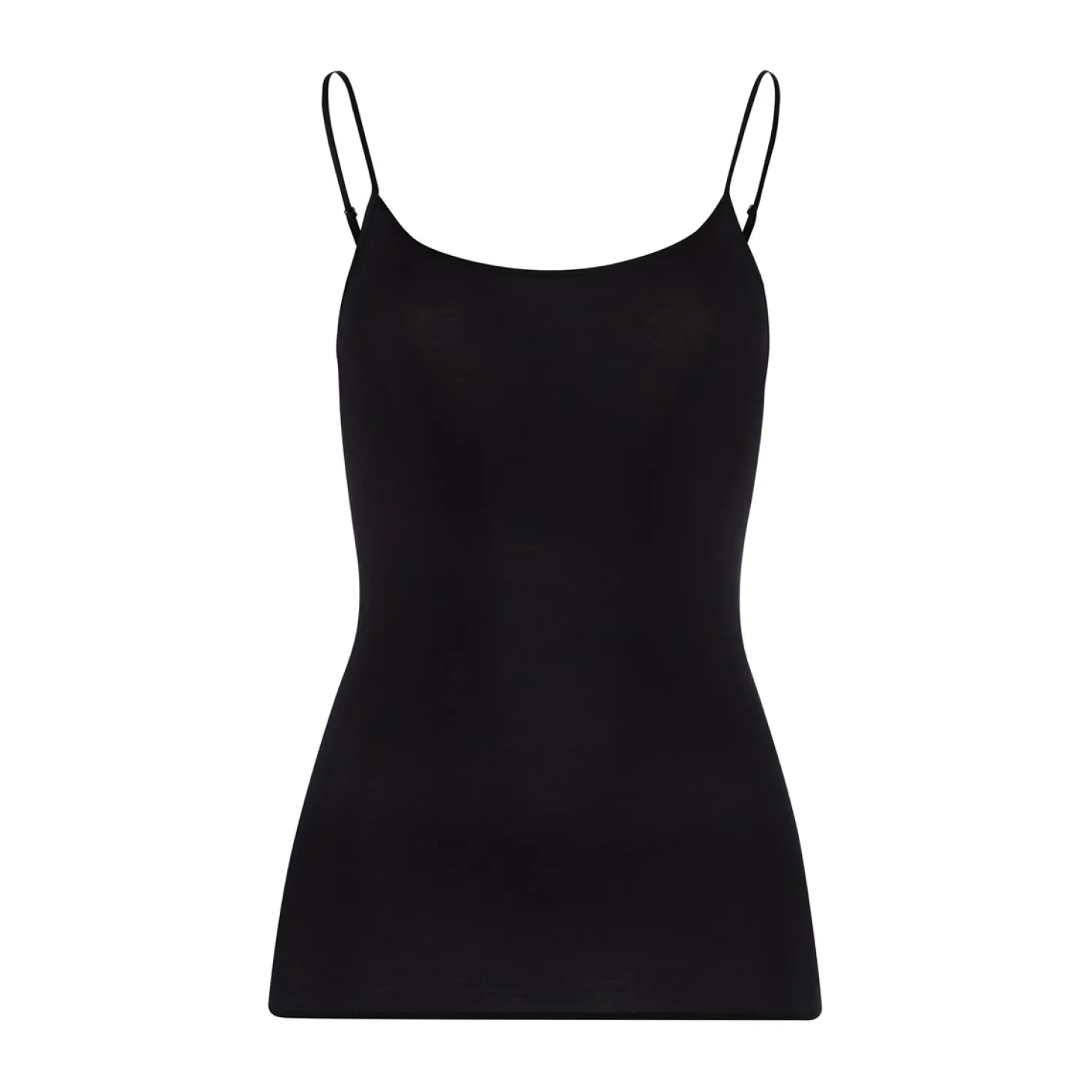 Incredible everyday comfort characterizes the HANRO Cotton Seamless Round Neck Camisole. An example of the best Cotton Seamless ever, this women’s camisole boasts HANRO’s signature seamless tailoring, hemless finish, plus a new mercerization technique to make the 100% cotton fabric even softer than ever. A satin trimmed scooped neckline, adjustable spaghetti straps, and hemless bottom complete this contemporary women’s basic. The result is a modern camisole top that has the versatility to be worn on its own or sleekly layered beneath a jacket or blouse. Please note: Size XL will contain side seams.