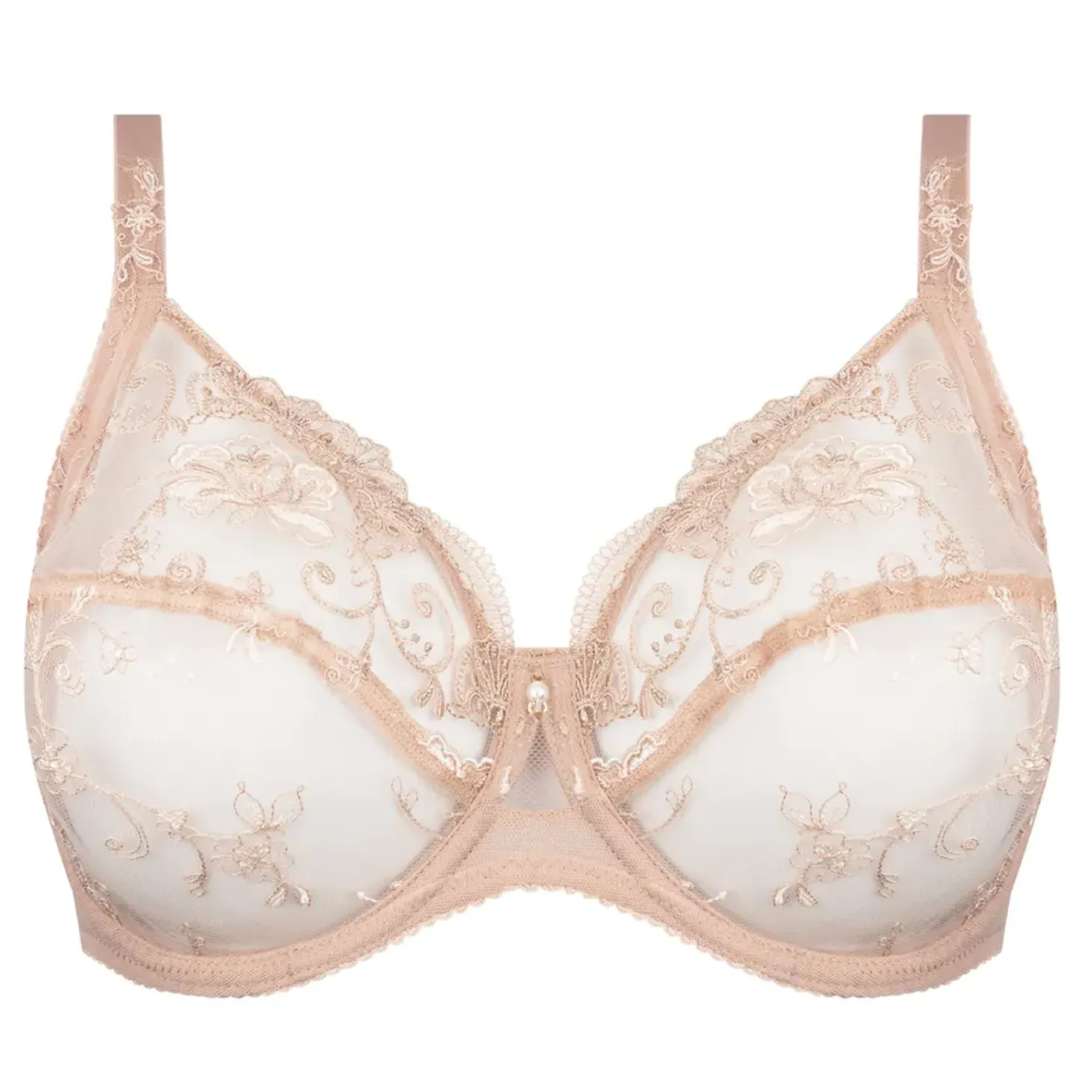 - Design: Embroidered tulle. 3-part cups lined with rigid tulle. Enveloped chest and natural curve. Pearly and sparkling pearls between the cups. The funnel back is lined with toned tulle for more support. Wide satin straps, stretchable and adjustable.