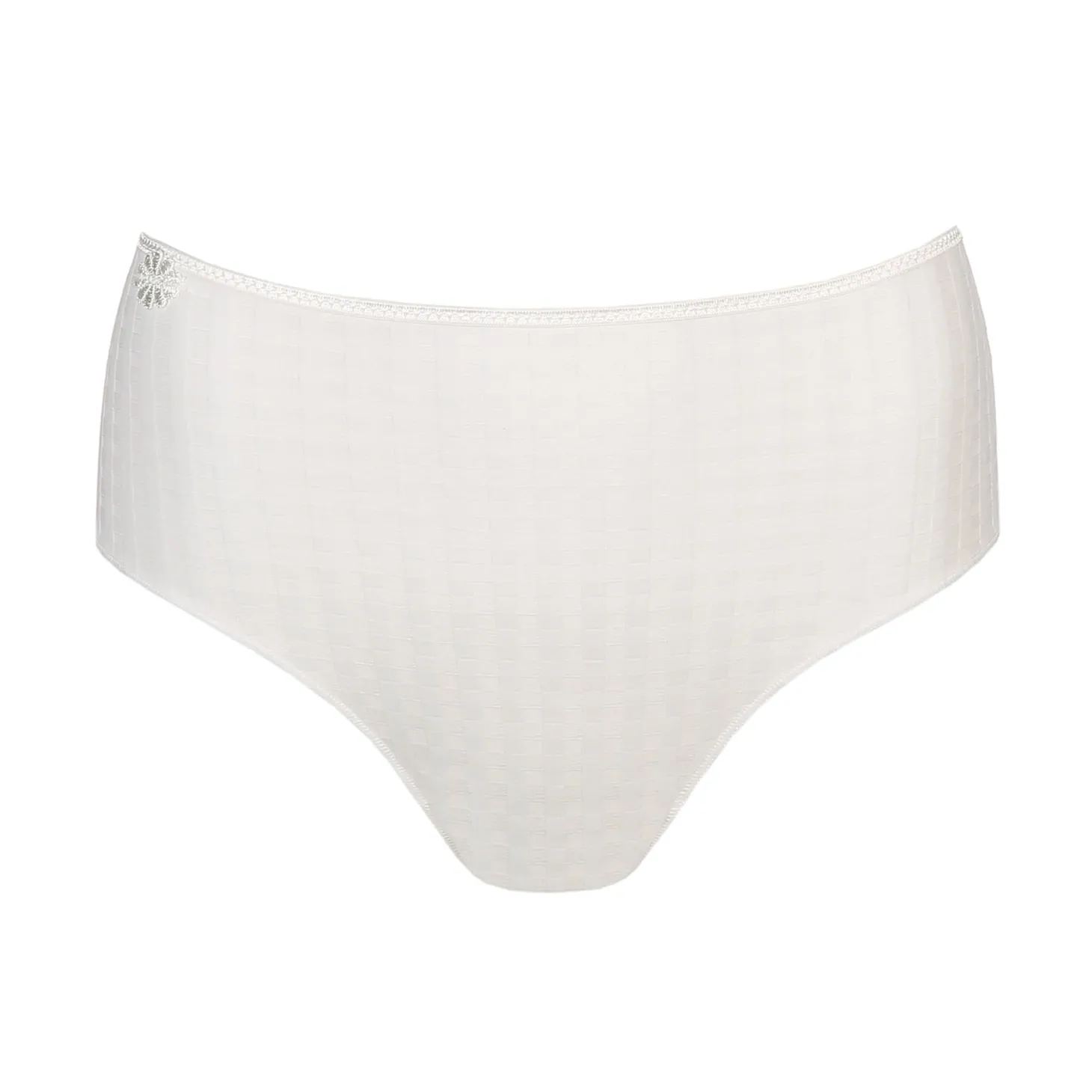 The Marie Jo Avero collection offers a combination of soft checked fabric and playfully embroidered daisies. These comfortable, high-waisted full briefs feature the Avero’s iconic checked print with floral details. You could say that Natural is the soft version of white. This hue flatters all skin tones and is simply perfect for brides. In Natural, the daisies and checks are beautifully tonal.