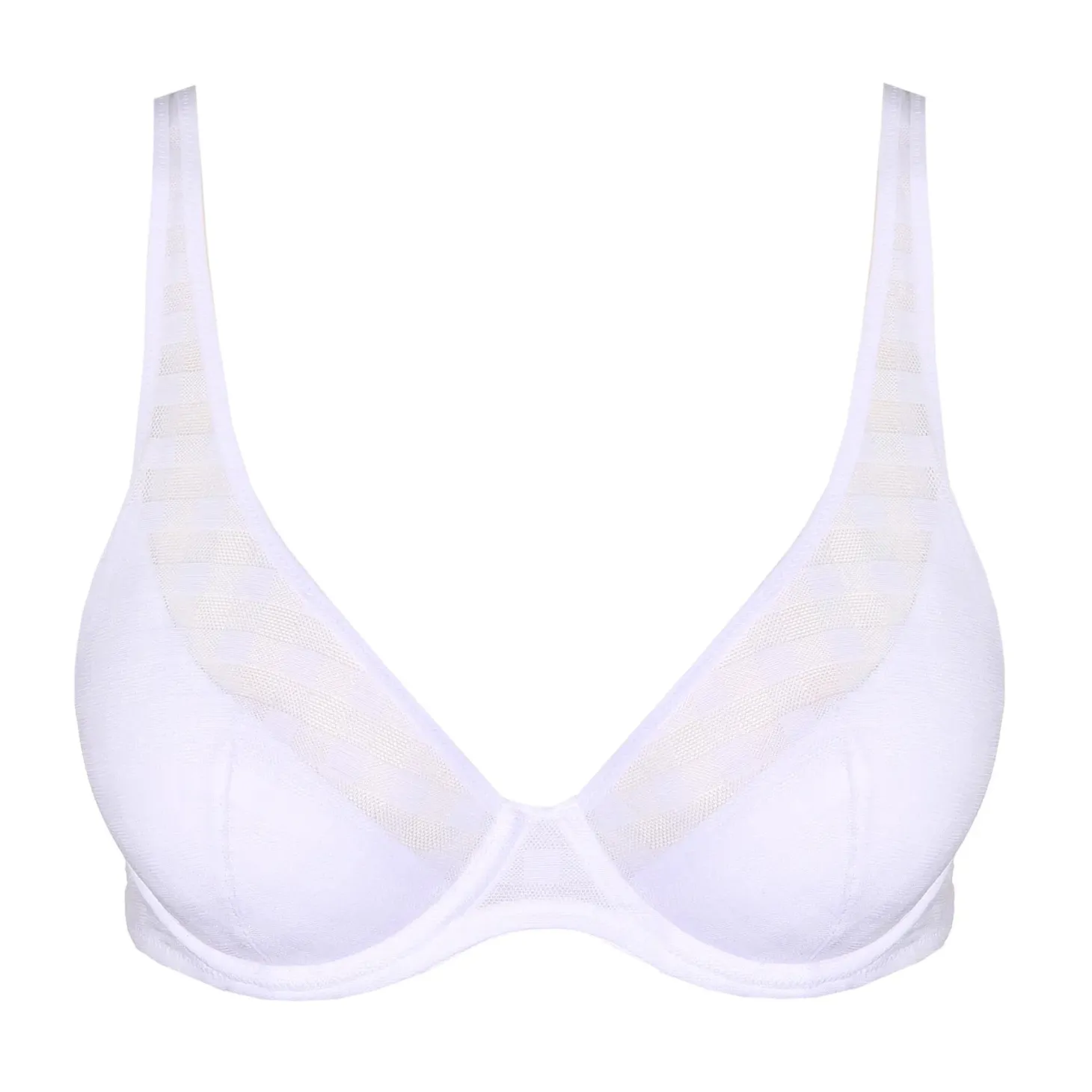 - Design: This plunge bra with half-padded cups combines playful checkerboards with Marie Jo’s celebrated superb fit. Timeless White will match perfectly with your light-colored summer outfits because it is not see-through.