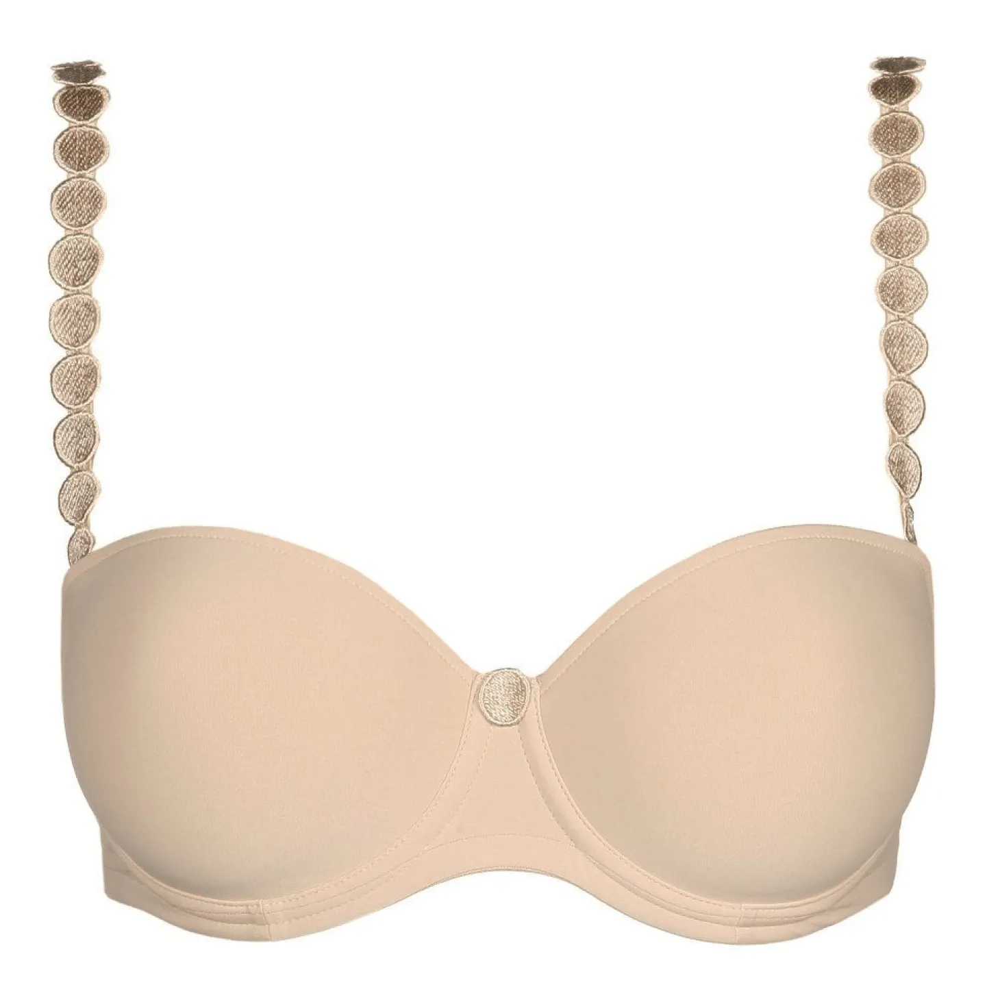 Your most beloved Marie Jo fit for every day or any occasion. This comfy padded strapless bra offers lift and all-day support while maintaining a stylish, non-transparent design. Crafted with premium materials, it can be worn strapless or with adjustable straps for versatile styling under any outfit. The fresh, pure, and feminine look enhances your natural shape, while the seamless finish ensures a smooth effect under clothing. Perfect for women seeking luxury lingerie with comfort, elegance, and everyday wearability.