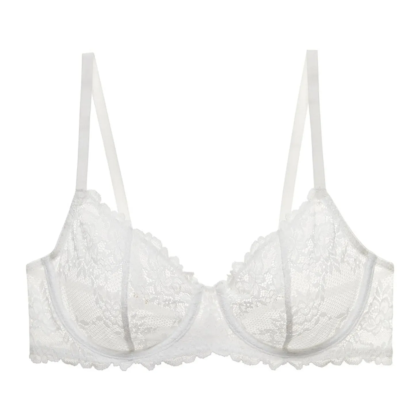 - Design: A naturally beautiful, everyday balconette underwire Stretch lace with extremely soft handfeel. Non-padded lace cups with fishnet ground to offer subtle modesty. Convertible straps can be worn conventional or criss-cross.