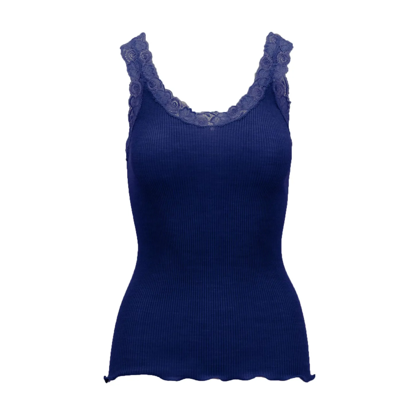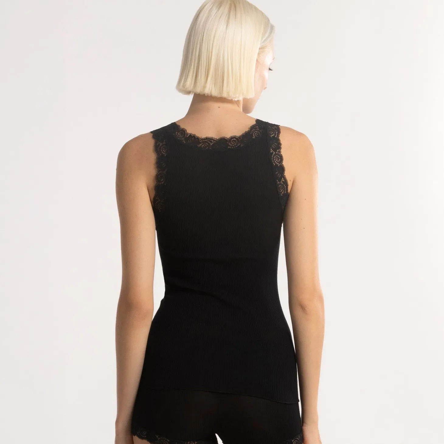 - Style: Ribbed Tank Top with Leavers Lace Trim