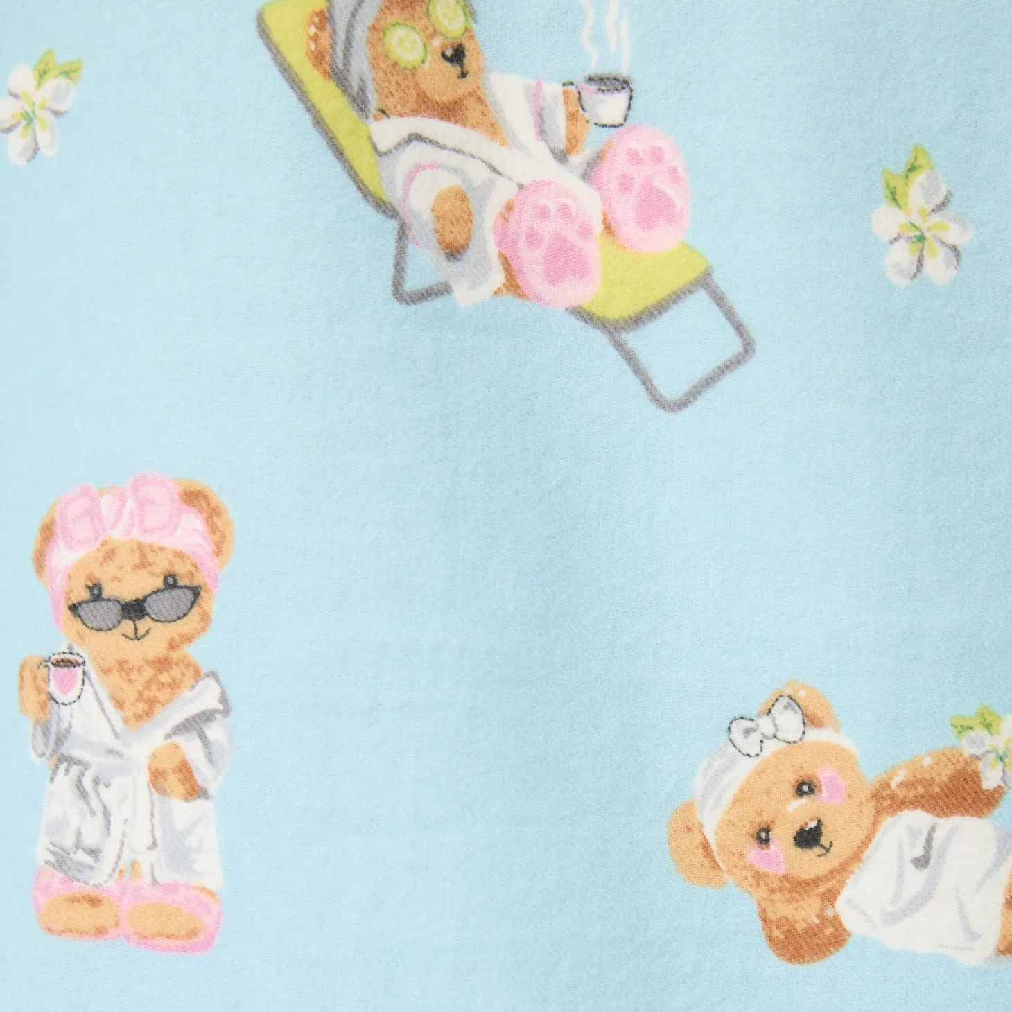 - Design: A cozy long-sleeve pajama set in light blue, decorated with whimsical illustrated bears.
