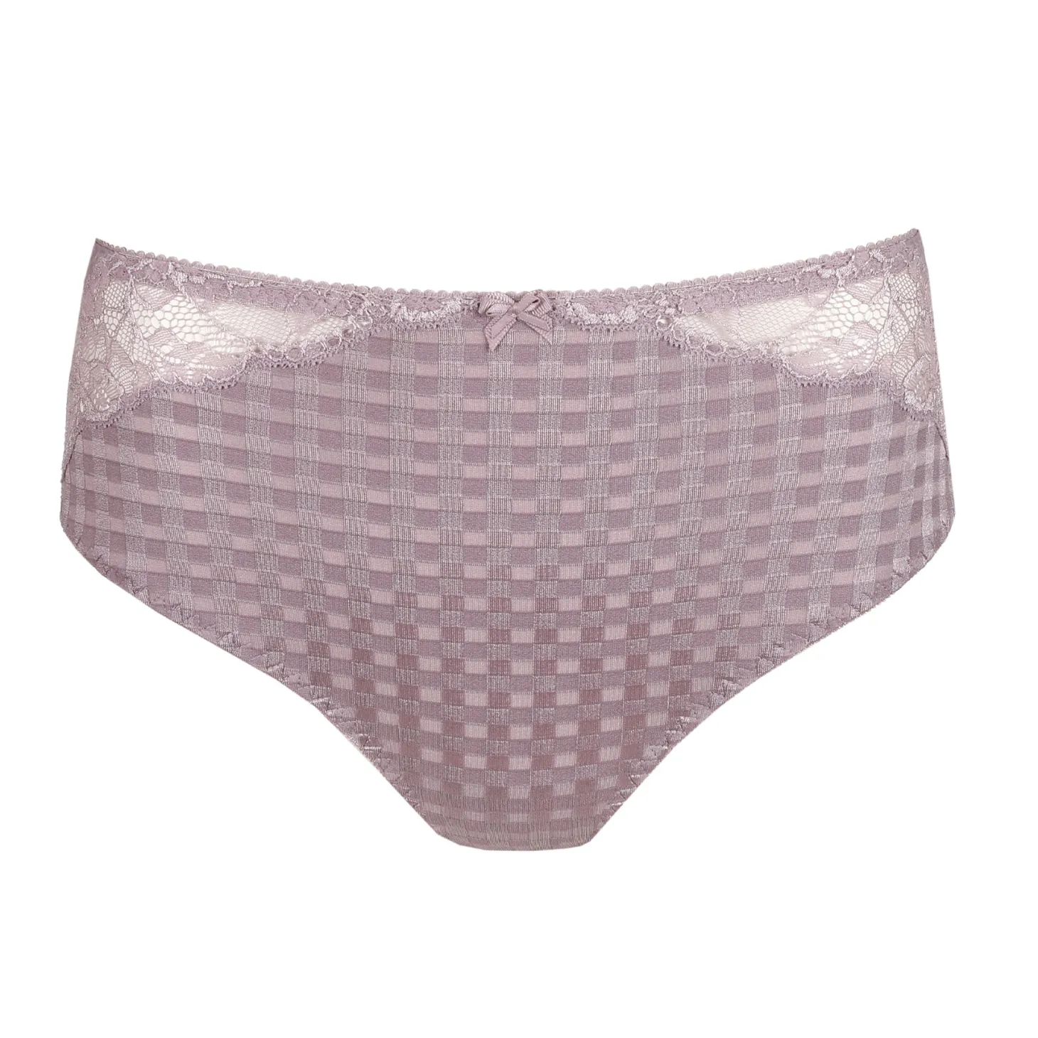 The PrimaDonna Madison collection offers the ultimate in fashion, luxury, and divine comfort. Elegant and comfortable high-waisted briefs in a gingham fabric with a luxurious lace trim at the legs.