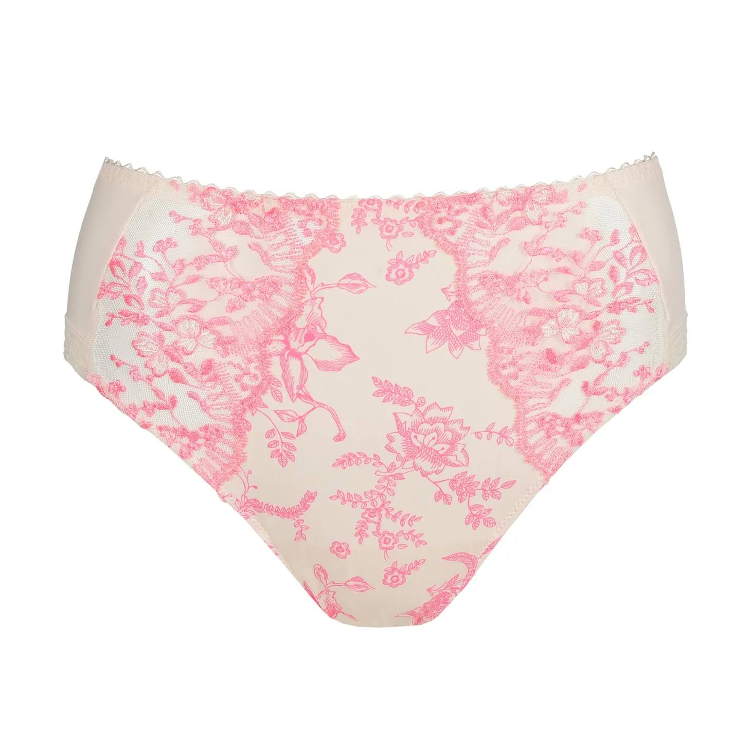- Design: These high-waisted briefs in delicate printed fabric are stylish and feminine. The front panel is trimmed with stunning neon pink embroidery.