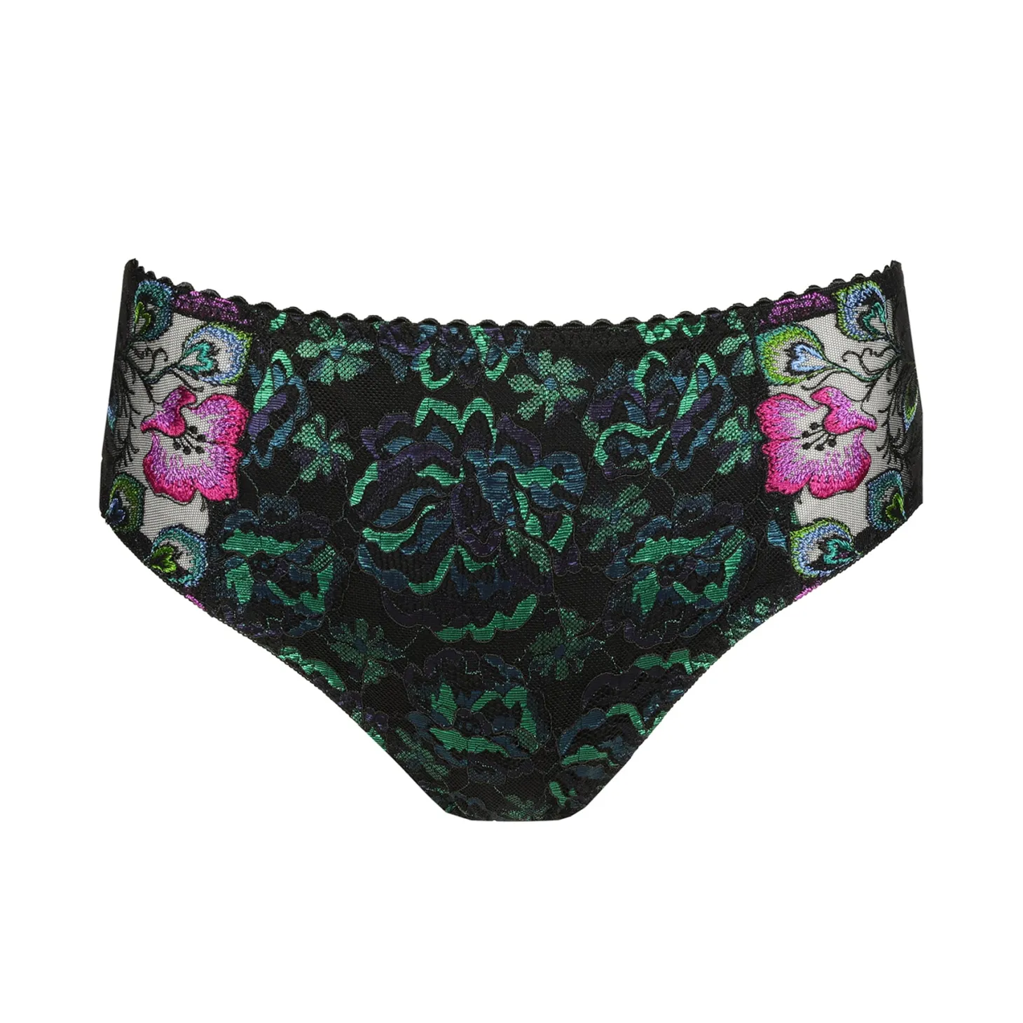 High-waisted briefs that sit higher at the waist and comfortably cover your bottom. The legs have an elegant cut in front.