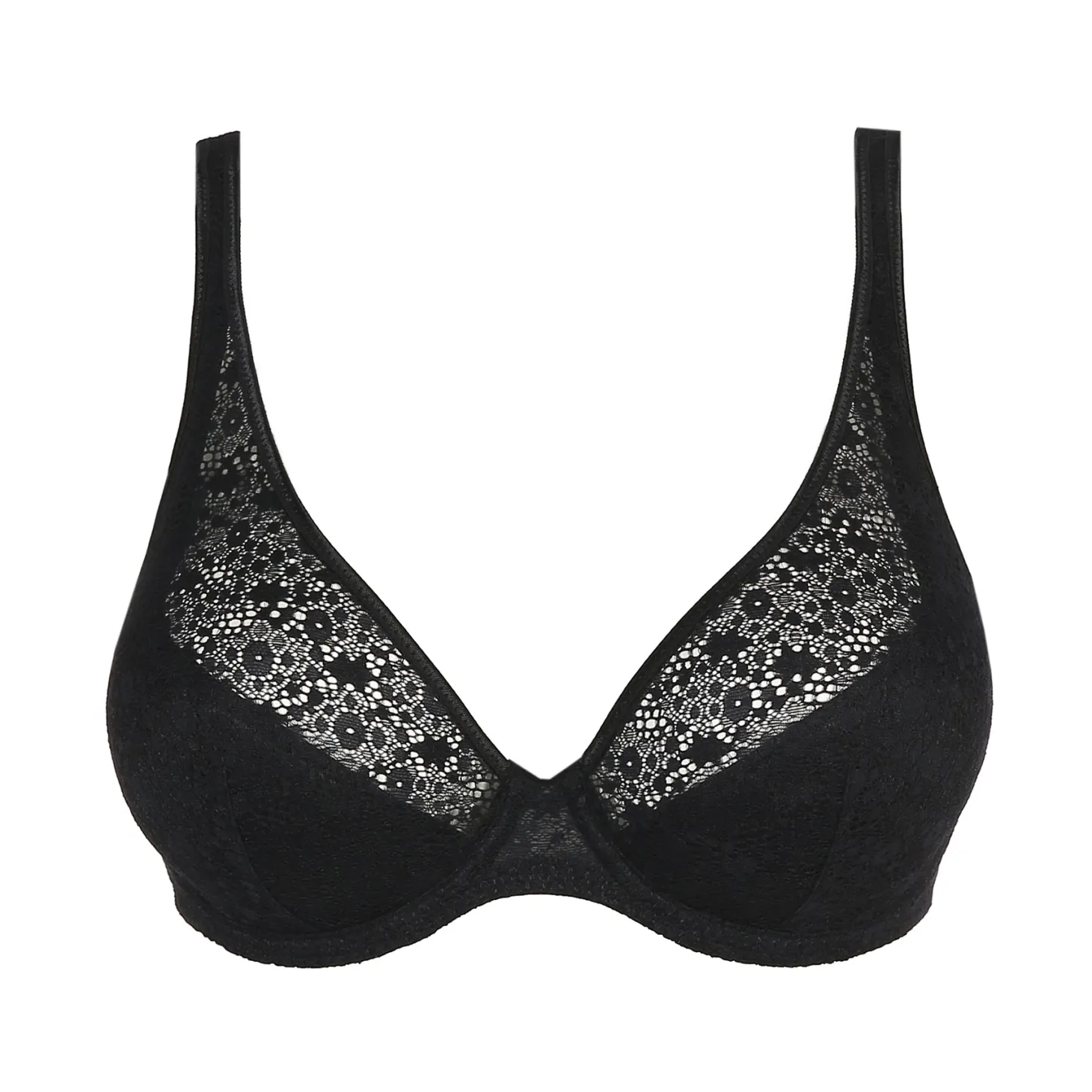 A trendy triangle cut with vintage lace and extra-deep-cut cups. This deep-plunge triangle style is sure to become your go-to party bra! Black is a timeless classic.