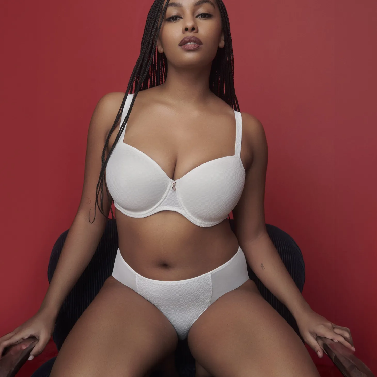 High-waisted briefs that sit higher at the waist and comfortably cover your bottom. The legs have an elegant cut in front.