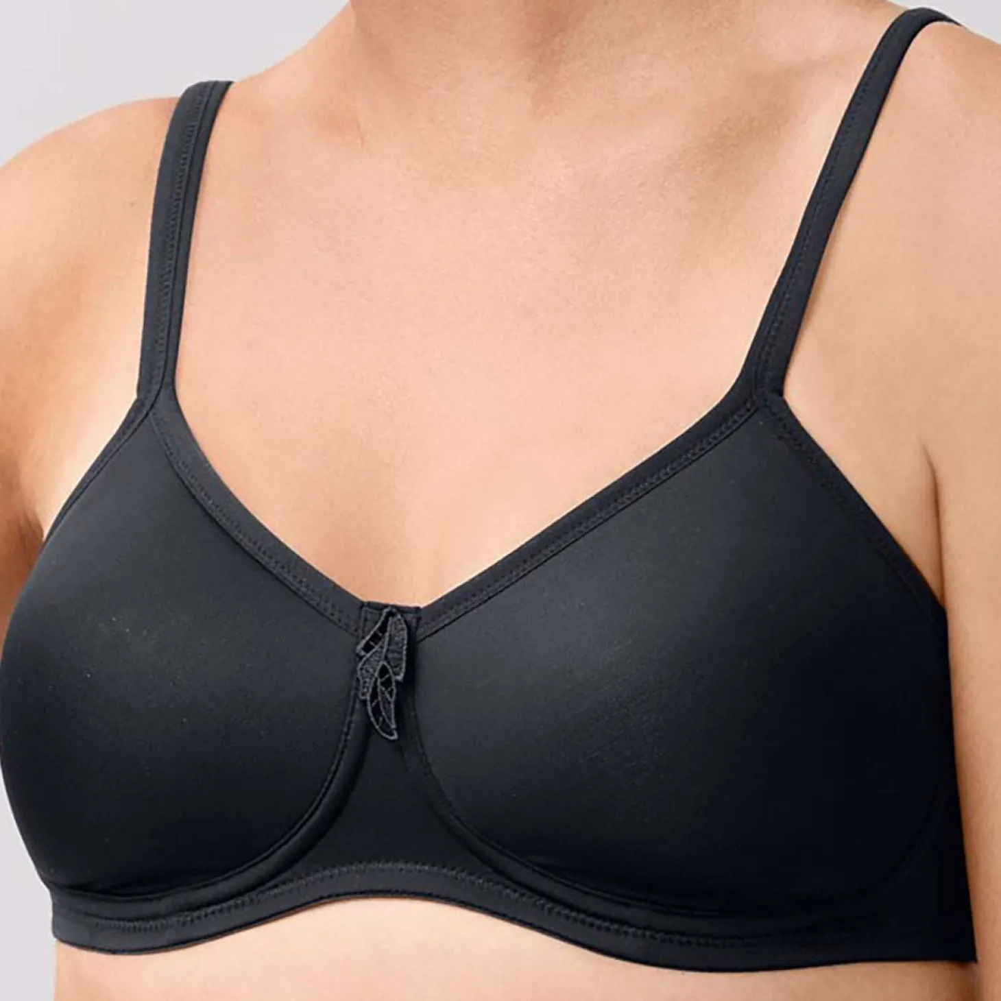 - Design: Prevent show-through in this wire-free T-shirt bra. Mesh pocket for use with prosthesis or enhancers. Achieve a smooth silhouette with seamless, foam-lined cups. Excellent side support thanks to built-in boning. Customize the fit with back adjustable stretch straps. 3 column, 2-row hook and eye back closure. Luxe stretch microfiber.