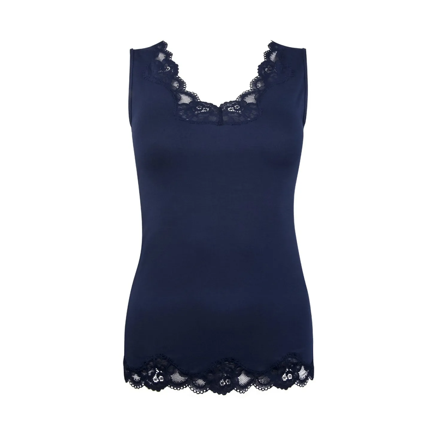 - Style: V-Neck Tank Top w/ Lace Trim Neckline and Hem