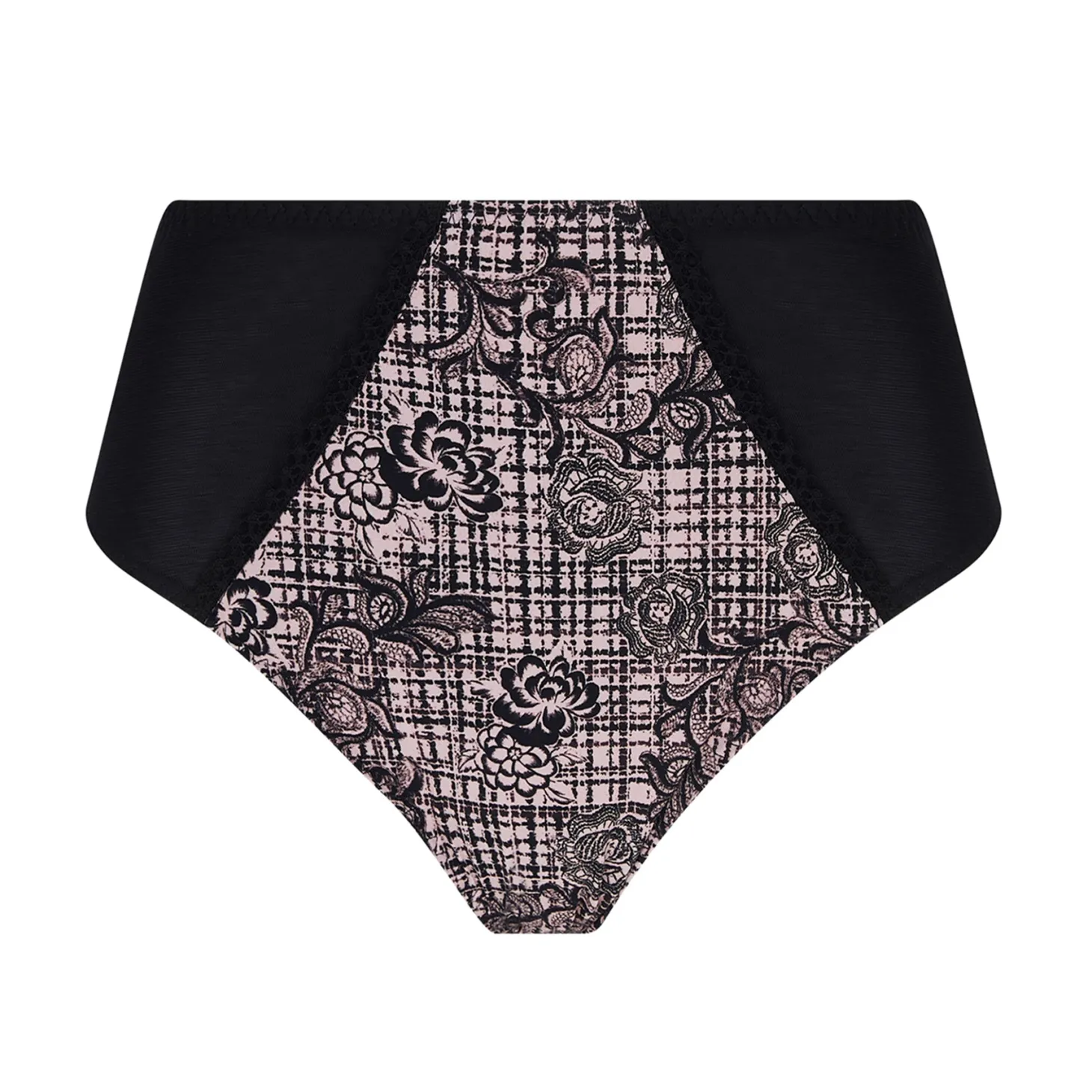 - Design: High waist full brief in a stunning floral and tartan print. Contrast solid black panels at the hips.