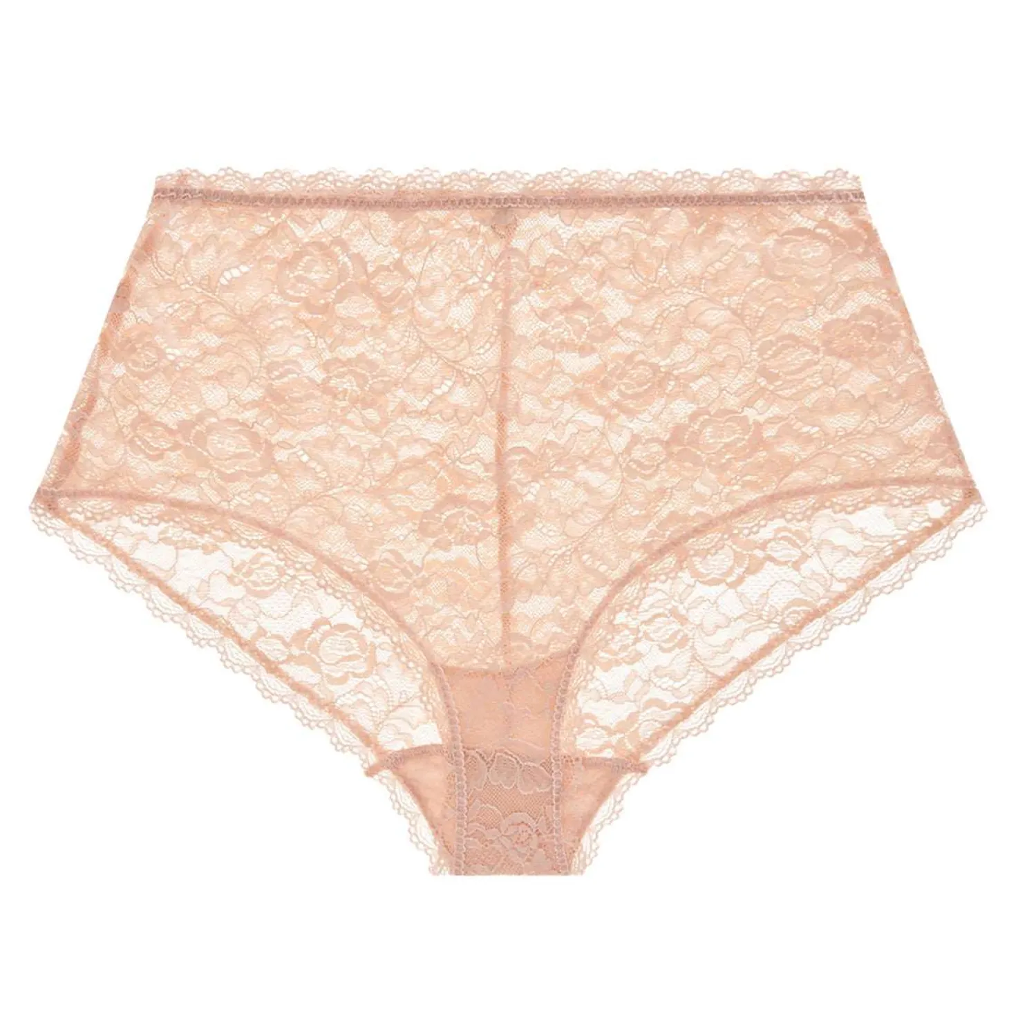 The ultimate in elegance, this High-waisted full brief is unbeatably comfortable. With a waistband extending to the navel, it shapes the silhouette with simple, sensual floral lace.