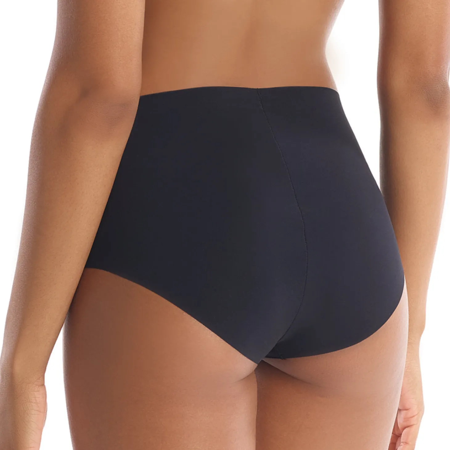 - Design: High waisted full coverage panty. Smooth, seamless edges won’t cut in with full back coverage. Raw-cut edges without elastic, trim, or taping to eliminate digs and bulges. Four-way stretch and high recovery. High fabric breathability. Fast-drying. Pilling resistant.