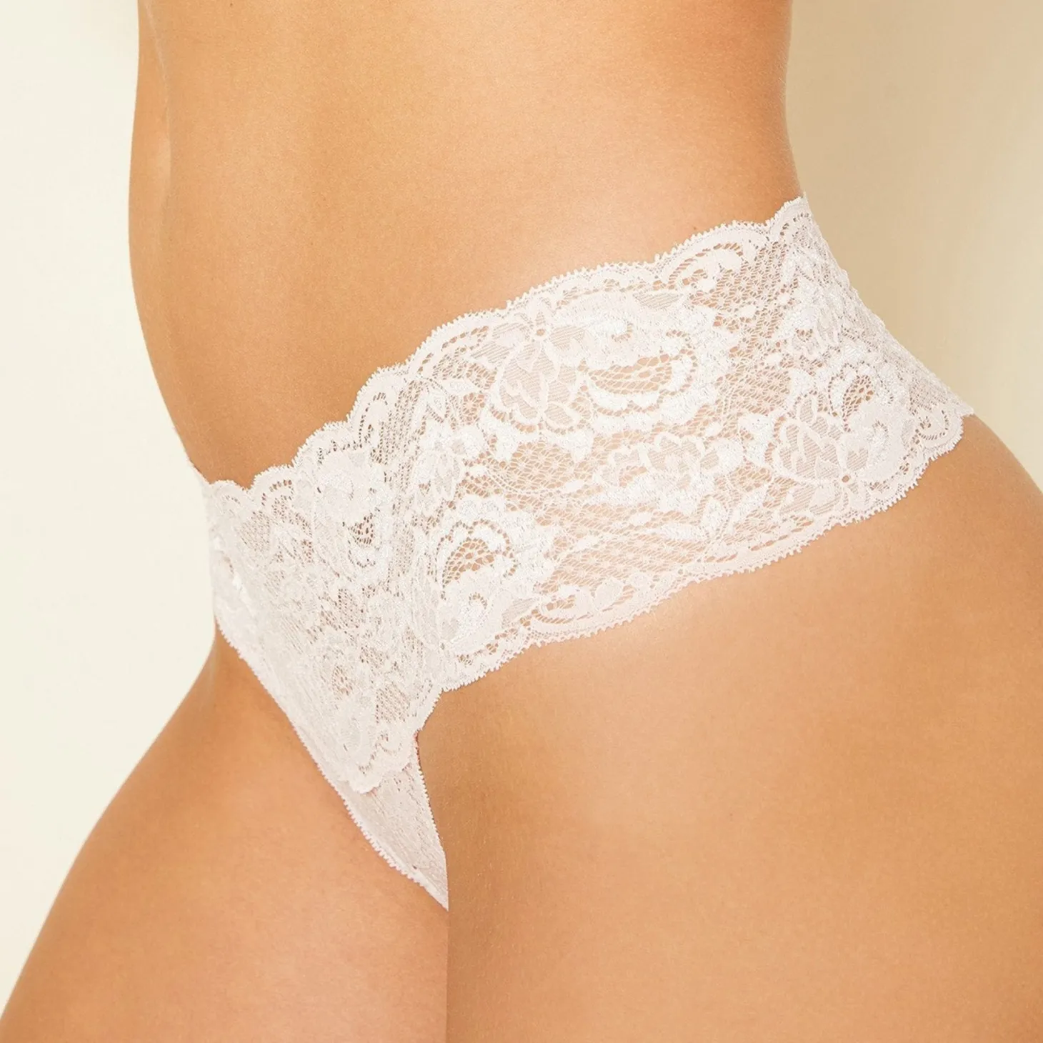 - Design: Perfect fit between low rise and high rise thongs. Soft, comfortable, wide waistband that won’t dig. Smooth, scalloped lace that lays flat and won’t roll. Minimal rear coverage. Cotton lined gusset.