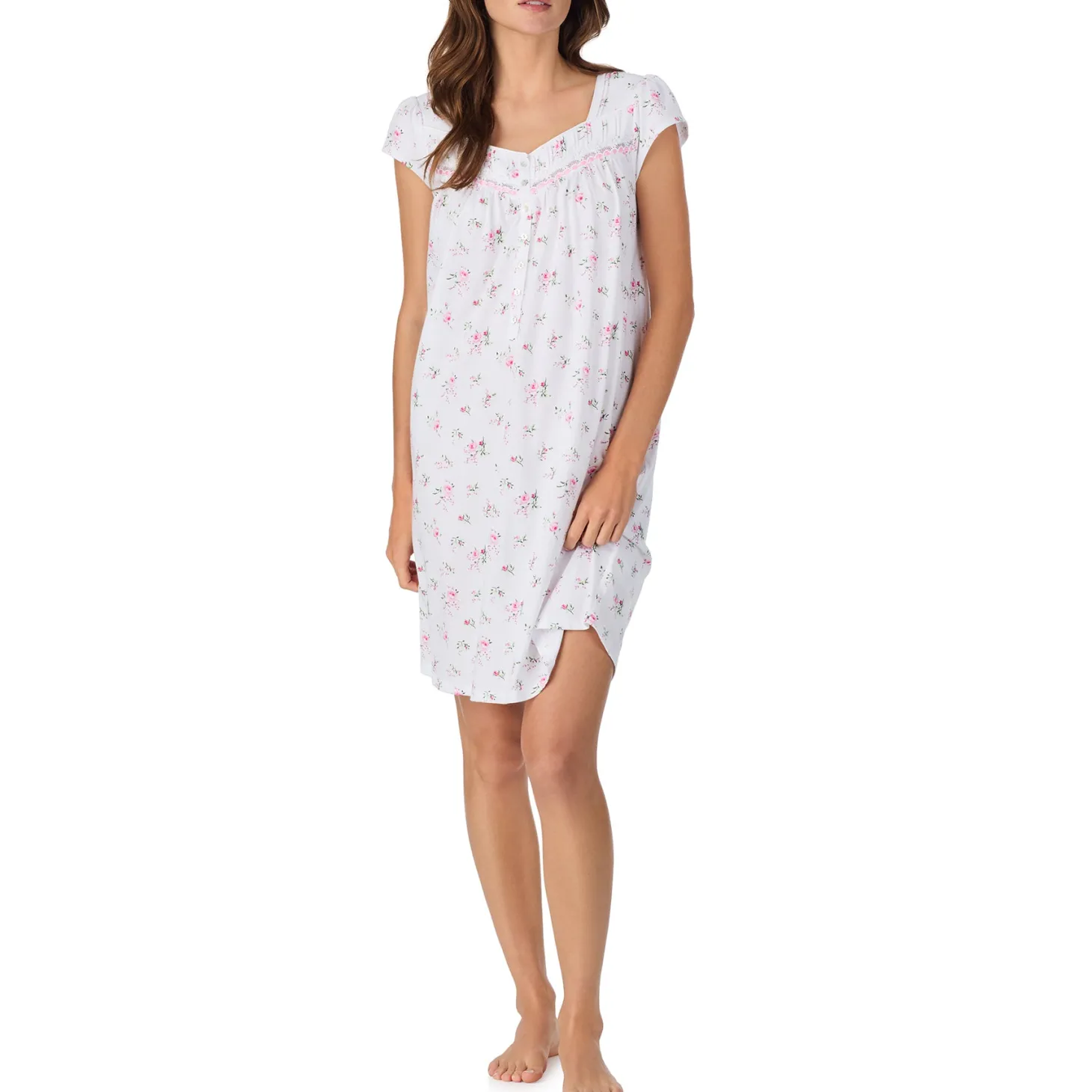 - Design: This floral nightgown features a soft, flowing silhouette with gentle gathers at the front and back yoke for ease and comfort.
