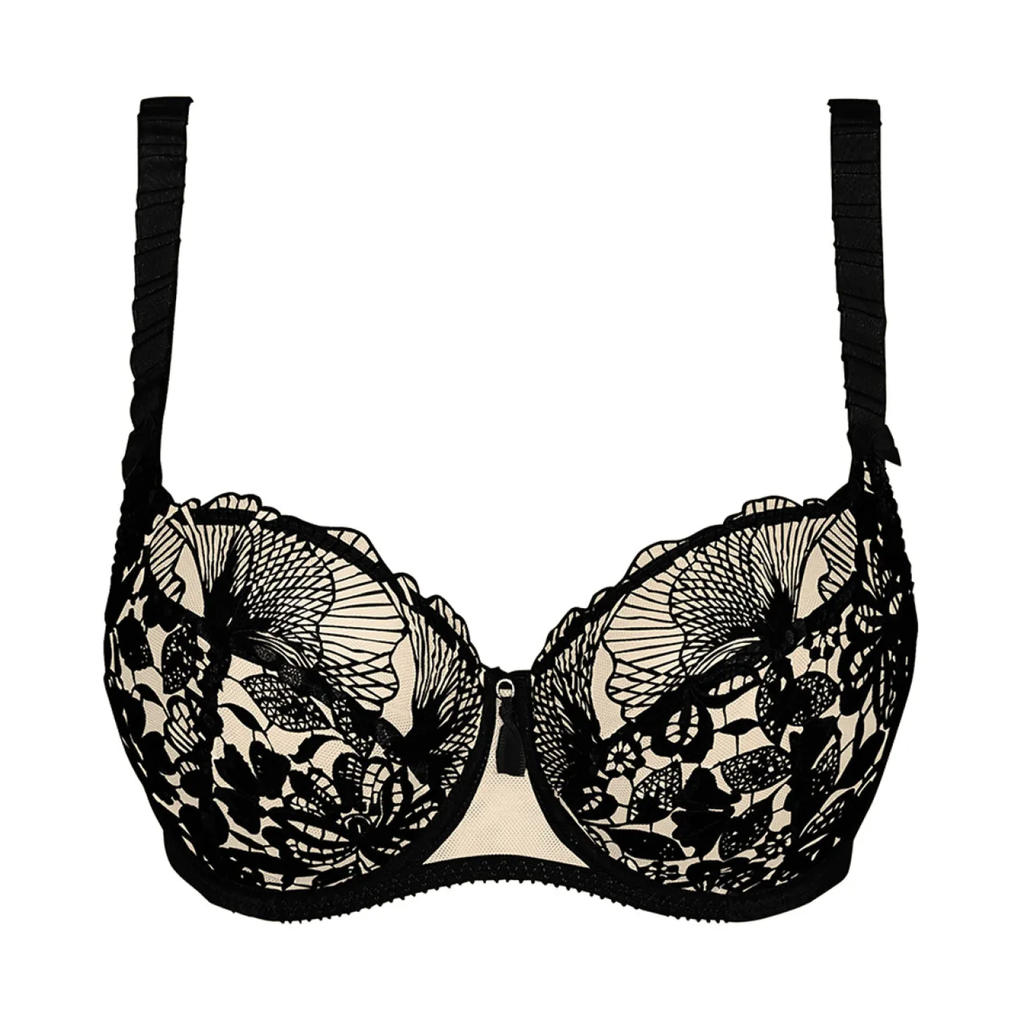 After a remarkable start when it was launched, Agathe is now available in Black and at the same time integrates the permanent collection. The spectacular black embroidery is enhanced by the beige tulle which perfectly reveals the desired tattoo effect.