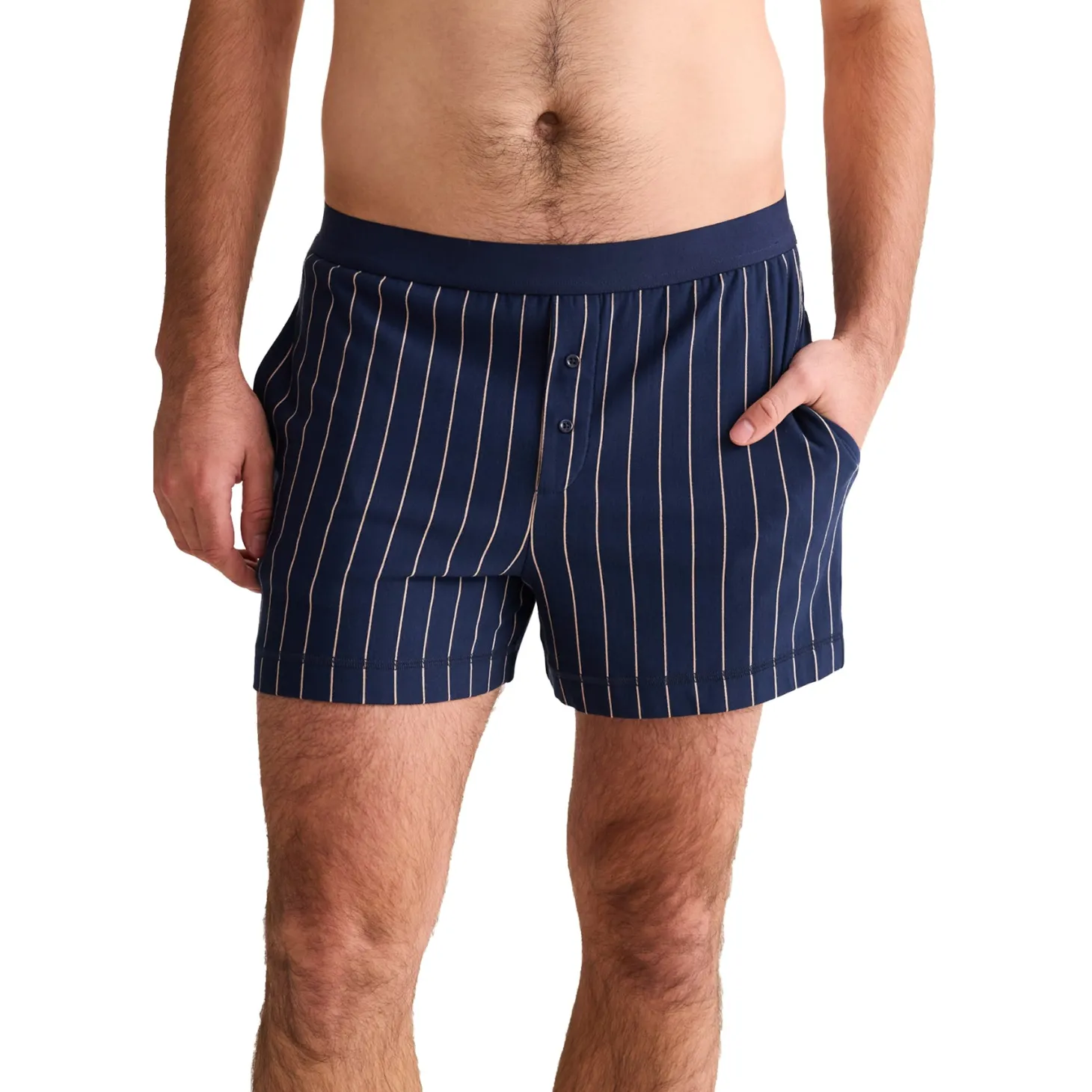 These men’s boxer shorts combine modern tailoring with unmatched comfort, featuring a relaxed fit, soft breathable fabric, and a navy base with refined praline pinstripes. Perfect as sleepwear, loungewear, or casual everyday boxers, these striped shorts are a versatile addition to any wardrobe.