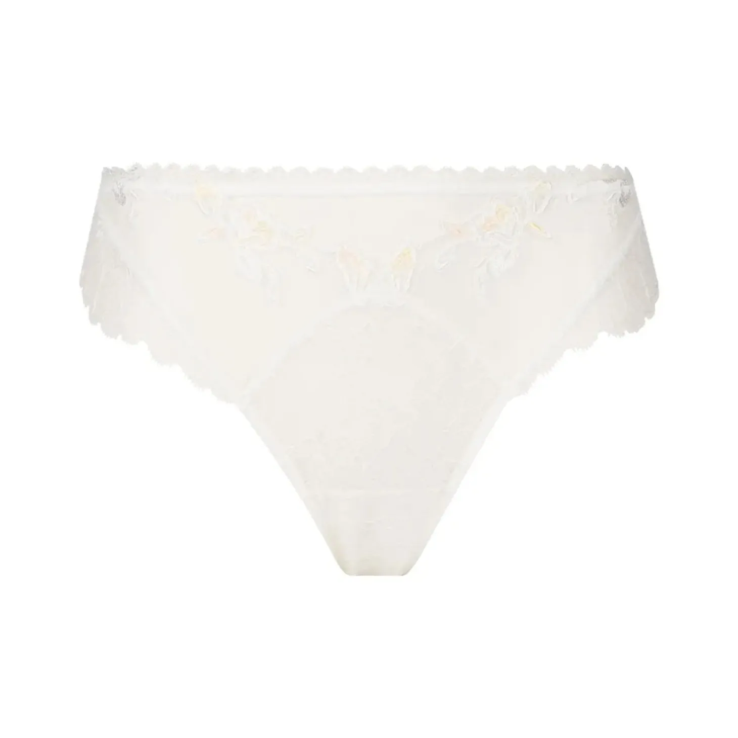 - Design: Italian panty in Leavers lace throughout, with embroidered Azalea flower details. Completely sheer.