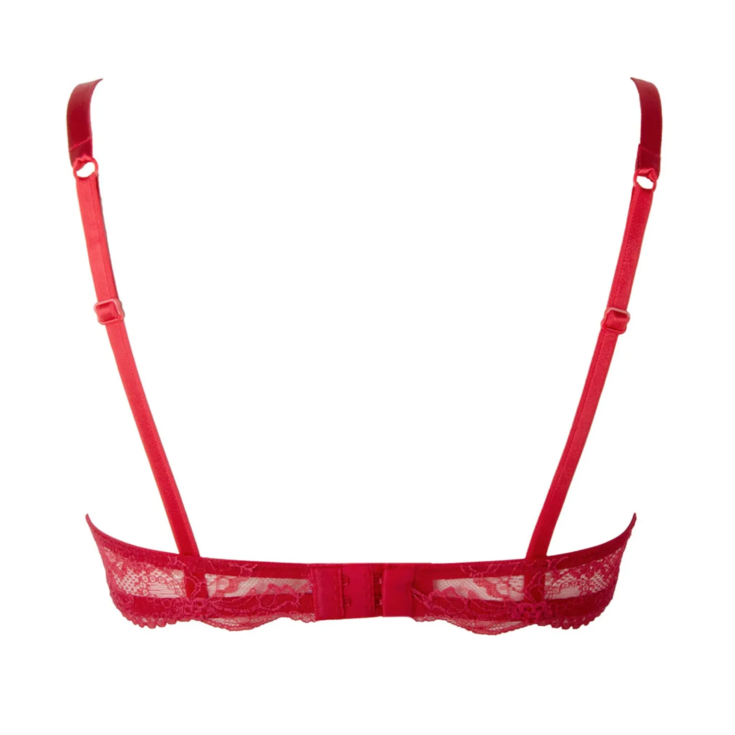 - Design: Underwired half cup bra in Calais lace with horizontal seam. Embroidered guipure lace cups with rhinestone inlay. Thin, adjustable straps. Delicate satin bows and mask with jewel accents the centre bust.