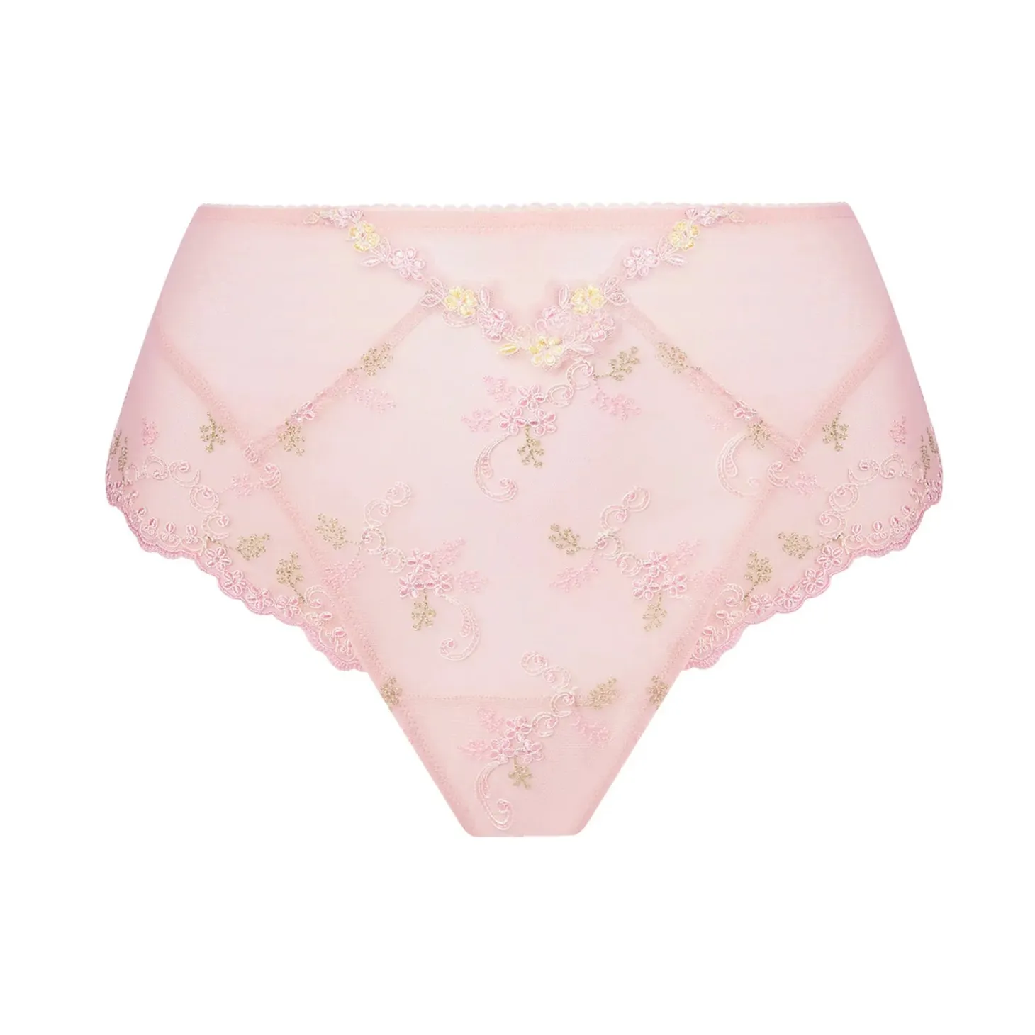 Enjoy luxurious details like embroidered width at the front and scalloped embroidery on the thighs, all with a comfortable mesh back