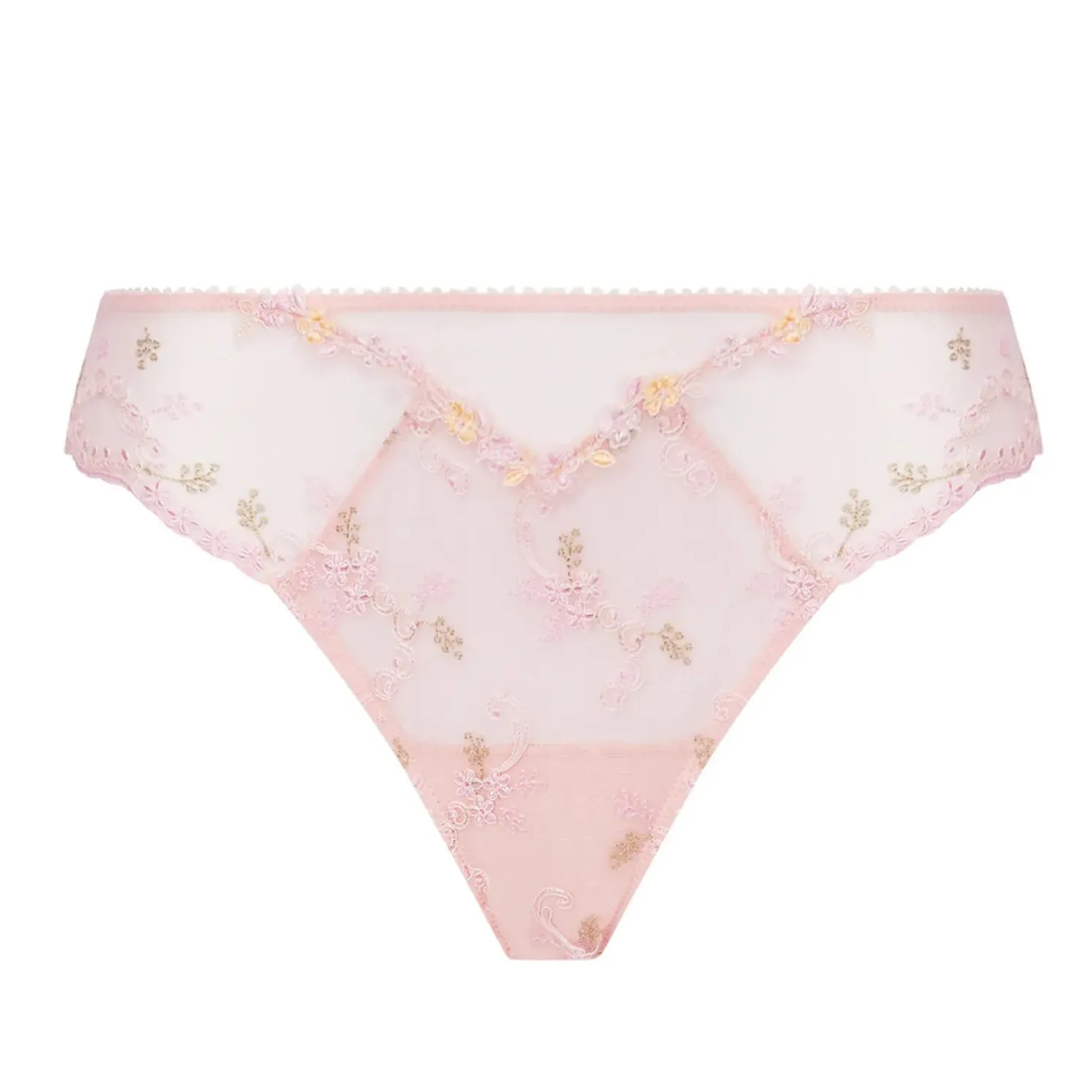 - Design: Embrace sheer elegance in our captivating brief, adorned with embroidered flower trims on delicate tulle triangles and scalloped embroidered thighs for an irresistibly alluring silhouette.