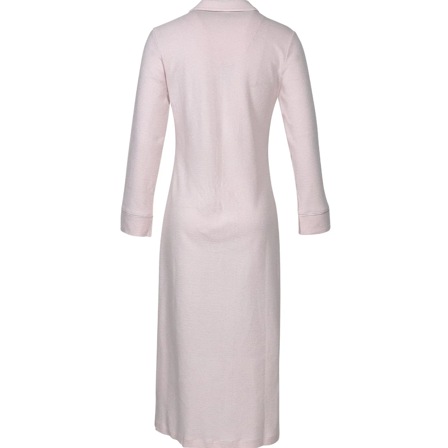 - Design: This long-sleeve zip-front lounge robe features a tailored silhouette with a notched collar, finely textured micro-pattern knit, and patch pockets, finished with clean piping details that highlight its structured yet comfortable design.
