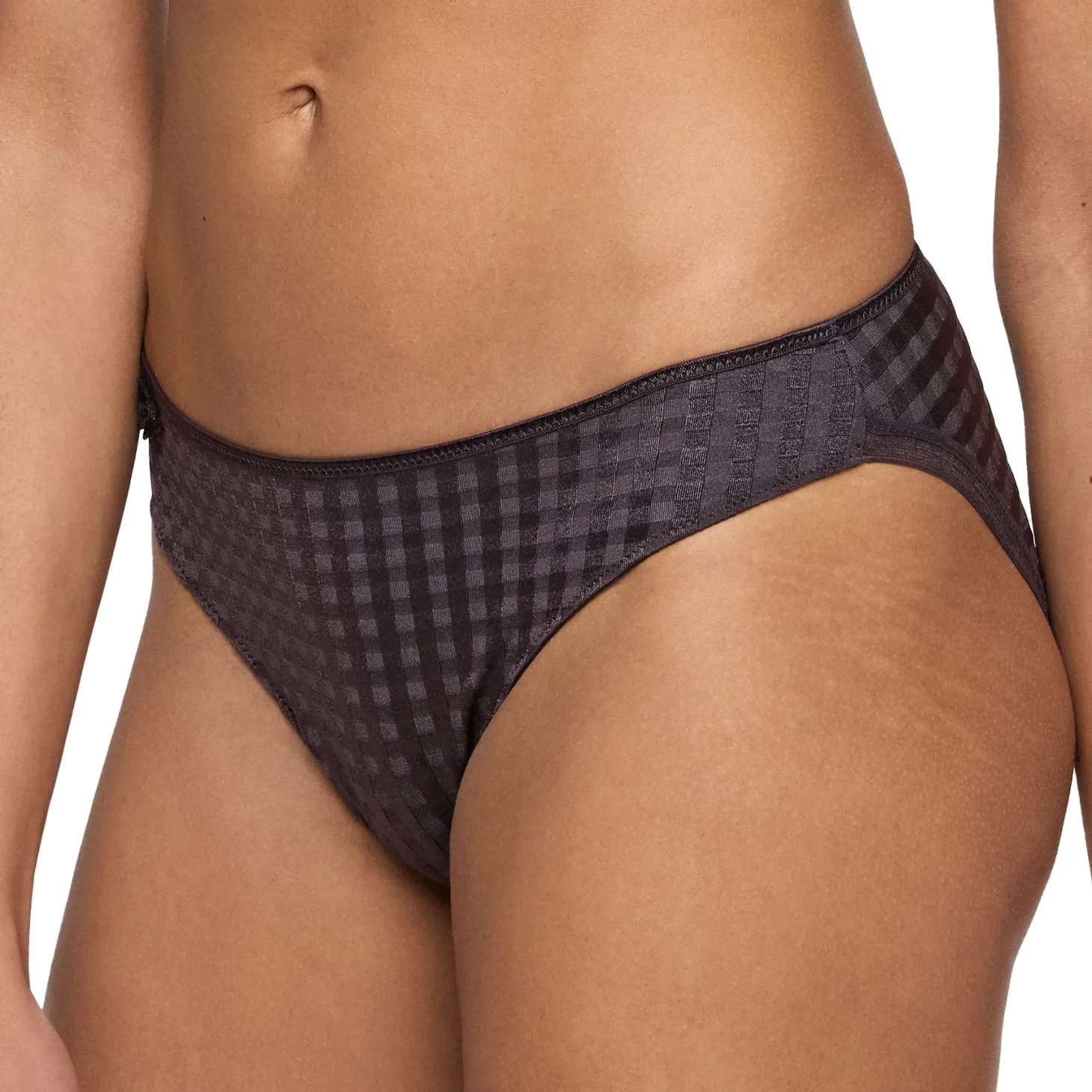 - Design: Opaque check fabric with subtle embroidered daisy details. Stylish Rio bikini briefs that are decorated with sophisticated floral embroidery. The thin band above the bottom ensures that the briefs don’t show under your clothes.