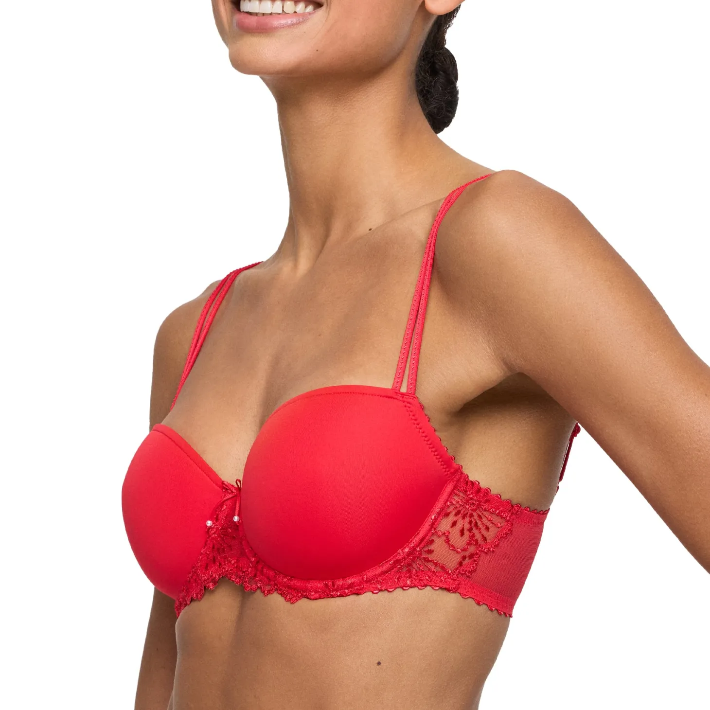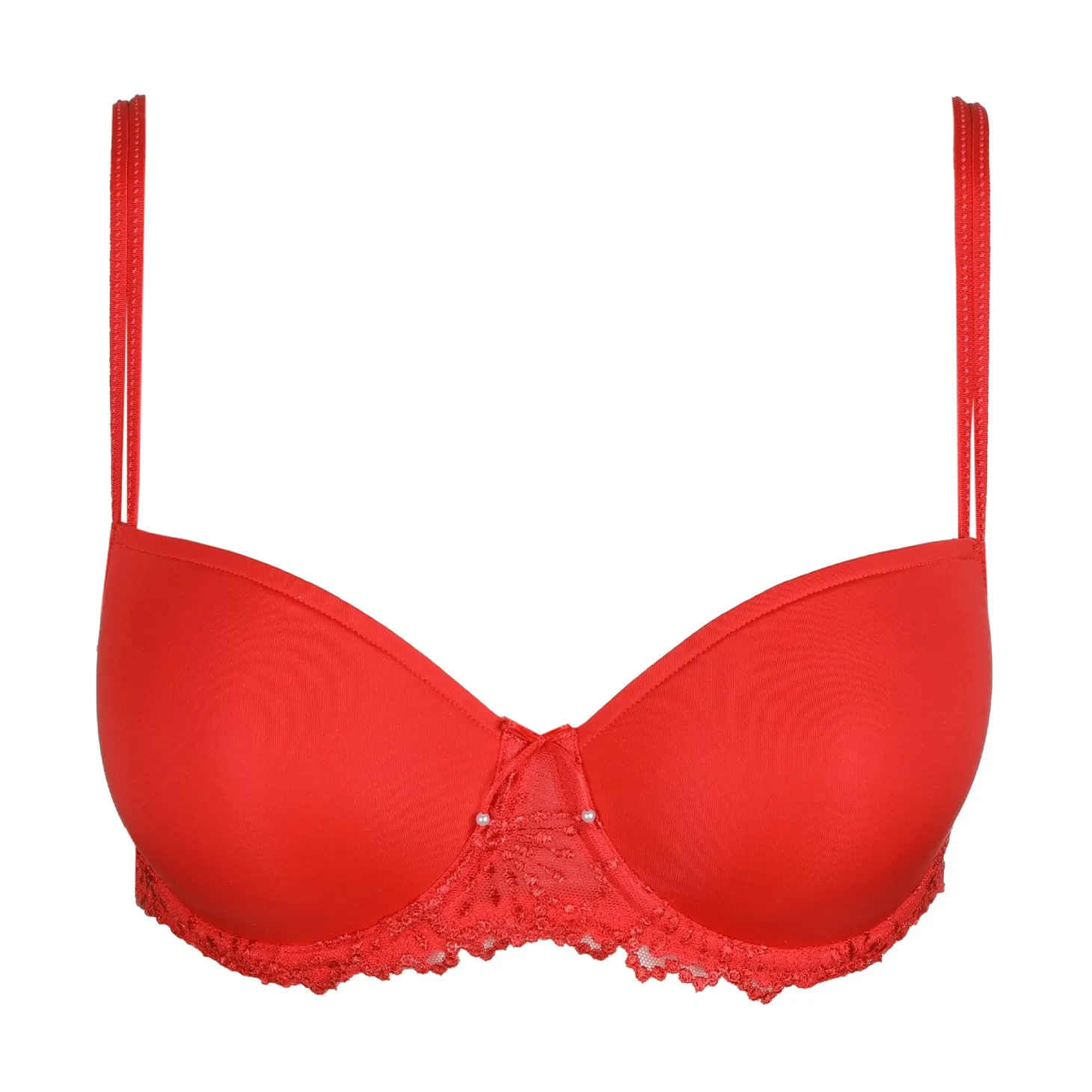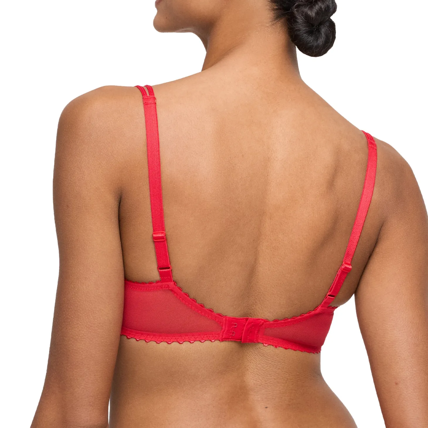 The Marie Jo Jane collection offers a combination of functional and seductive. Padded bra with amazing cleavage created by the balcony cut. Wide underwiring guarantees the necessary comfort. This vibrant red is designed to disappear seamlessly under white clothing – no show-through, just smooth confidence.