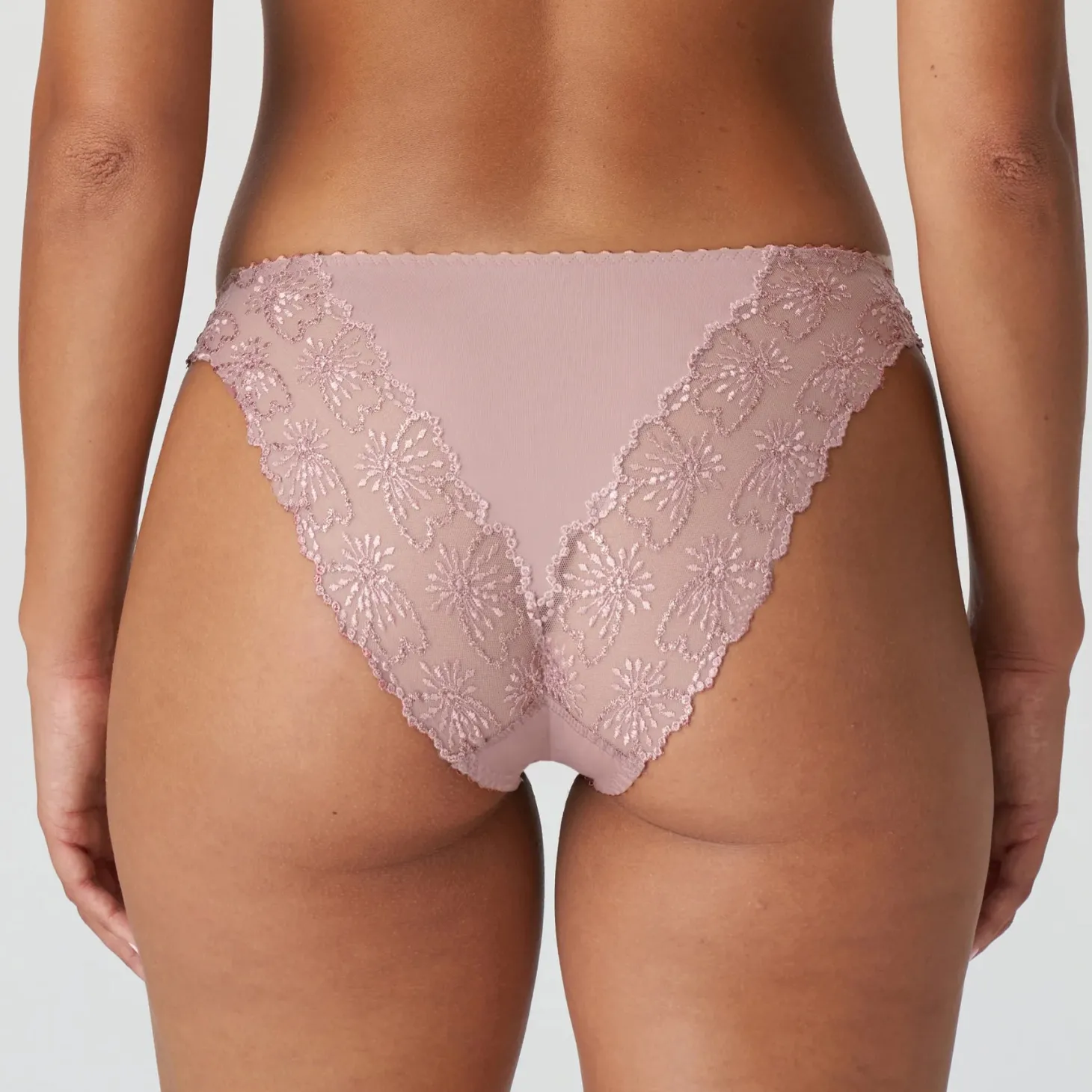 This Marie Jo Italian panty is playful and sexy. A perfect piece to add to your underwear wardrobe. The embroidery on the bottom is a piquant detail. The panties are cut higher on the leg so they do not pinch. Bois De Rose gives the delicate lace of Marie Jo Jane that extra touch of elegance that every woman craves.