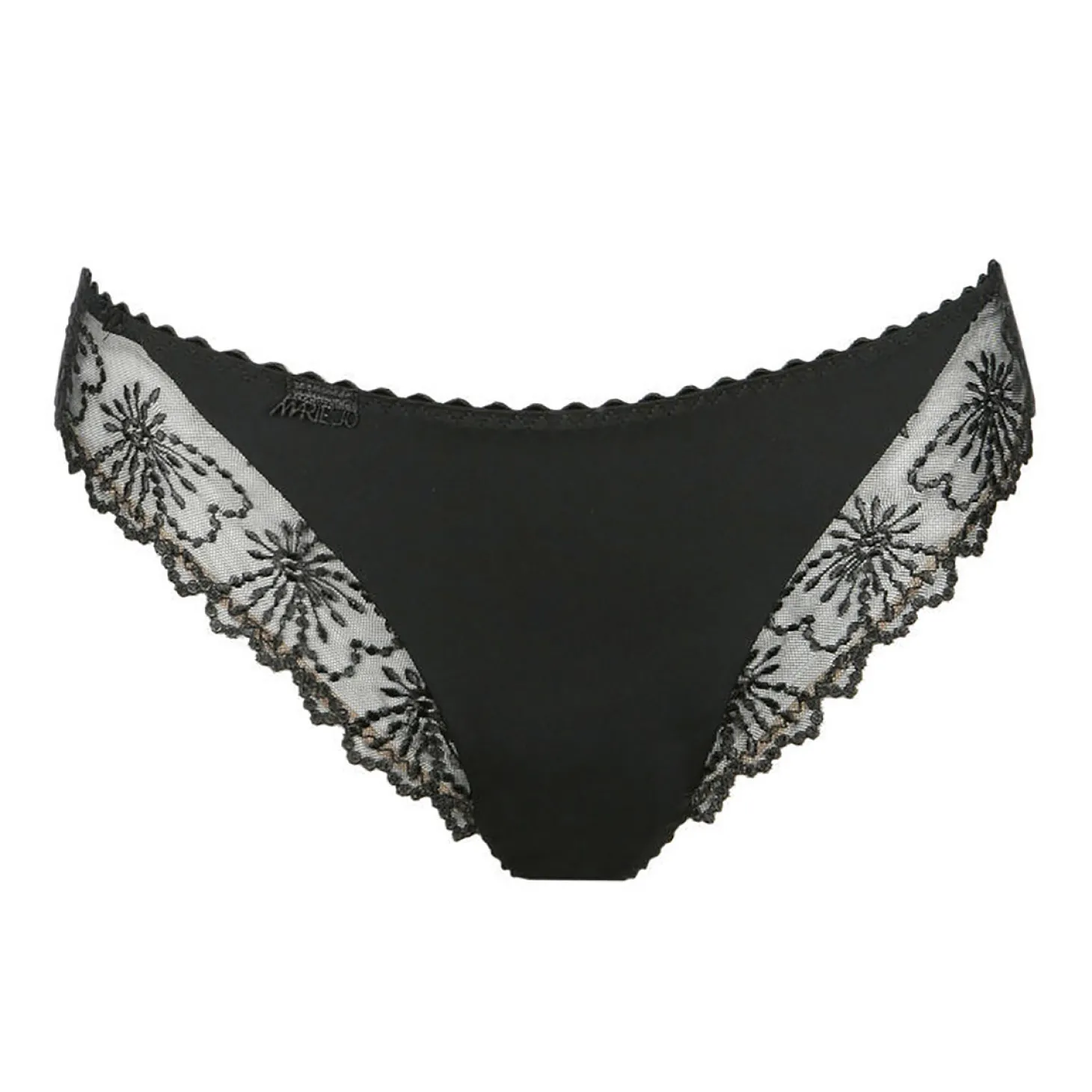 This Marie Jo Italian panty is playful and sexy. A perfect piece to add to your underwear wardrobe. The embroidery on the bottom is a piquant detail. The panties are cut higher on the leg so they do not pinch.