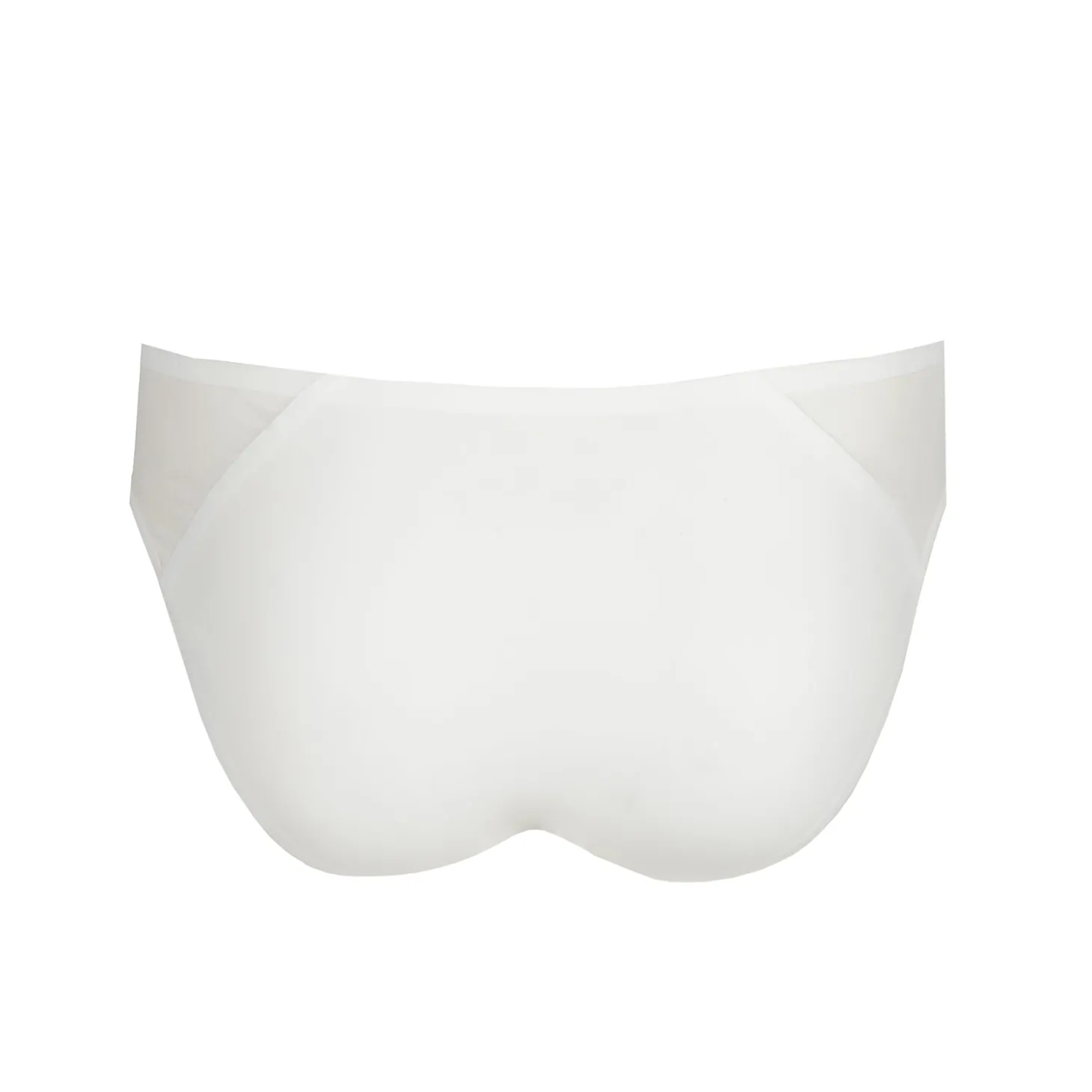 - Design: Mid-rise bikini panty. Moderate rear coverage. Mesh panels on side which wrap around to the back. Brazilian briefs with an elegant cut and a comfortable fit.