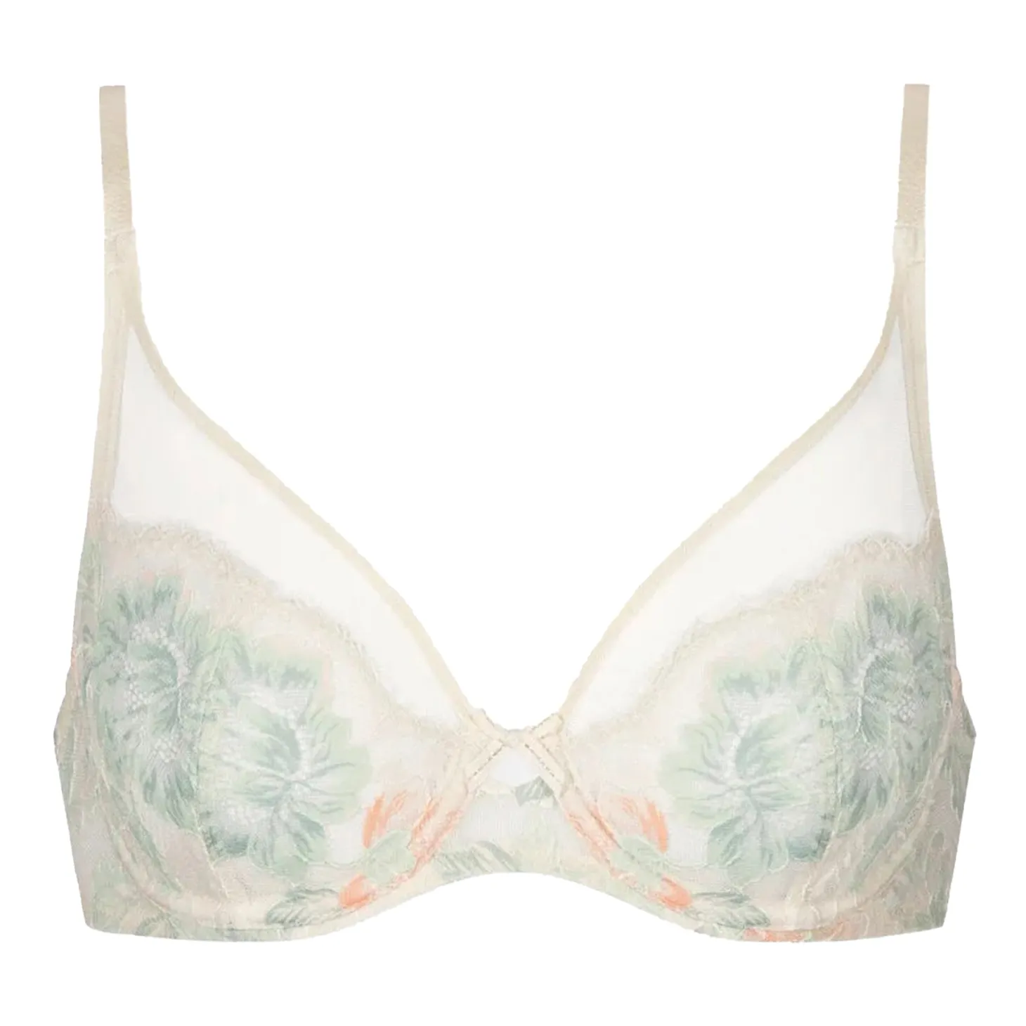 - Design: Sewn underwired bra, Transparent cups with lace, Lightweight bra without padding, Floral watercolour print, Bow on the centre front, Hook and eye fastening, 3-way adjustable, Decorative eyelash lace, High wearing comfort, Our model wears size 75B, Hand wash, not suitable for tumble drying