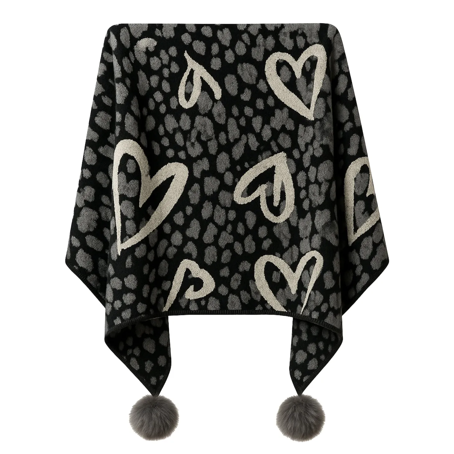 - Design: This charcoal-toned poncho features a contemporary abstract-animal jacquard pattern in layered shades of grey and black.