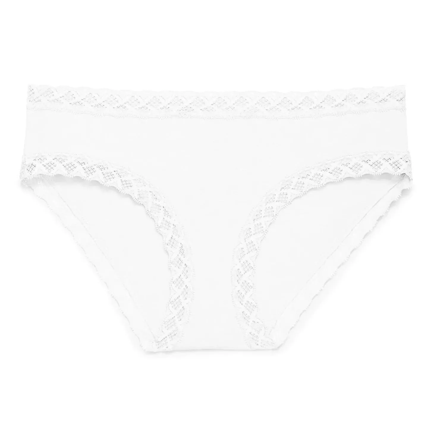 Natori stretch cotton panty features pretty stretch lace at waist and leg openings.