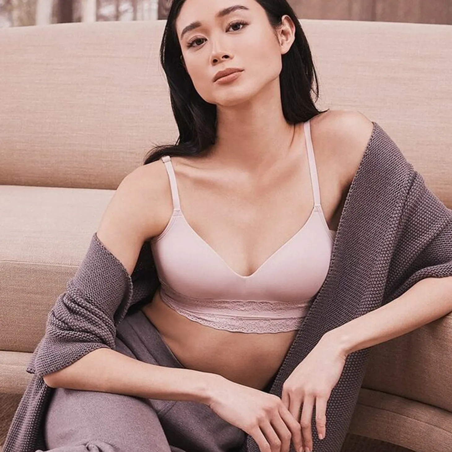 Stretch foam cups and soft lace on this wireless bra provide all-day comfort you won’t want to take off.