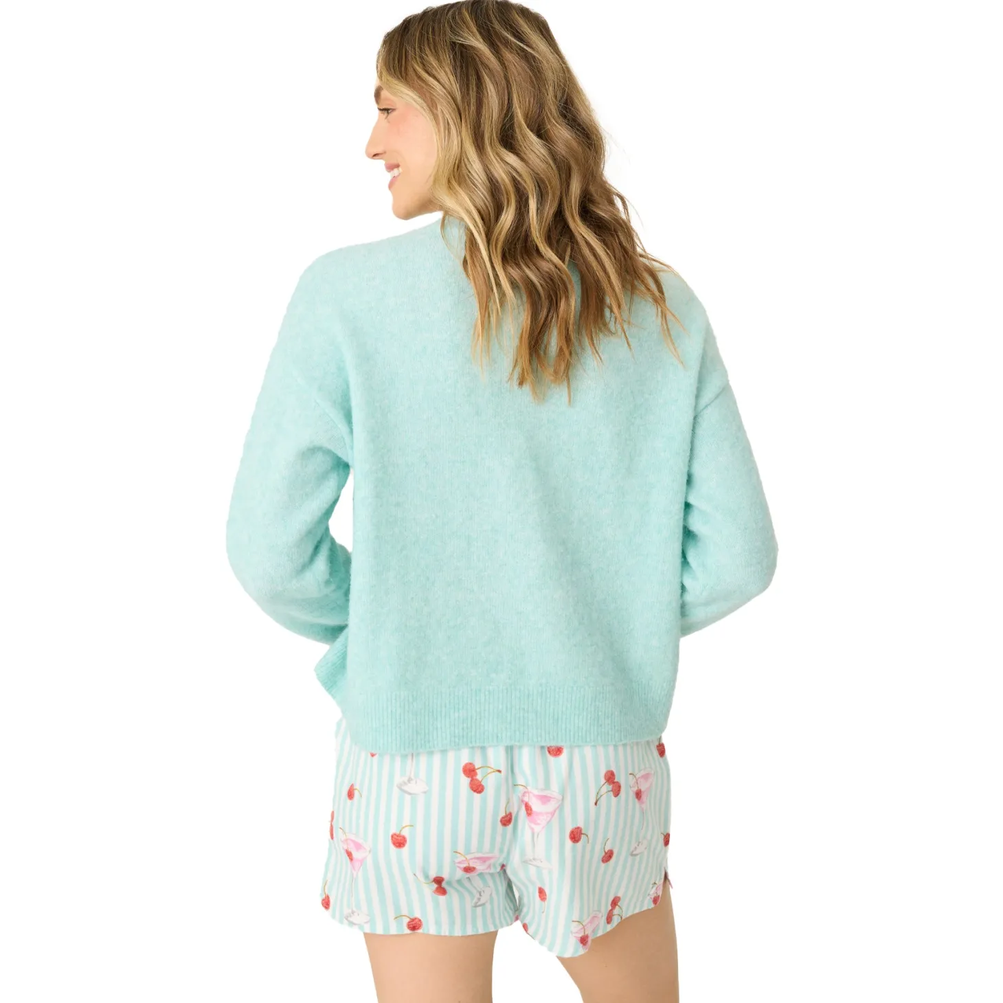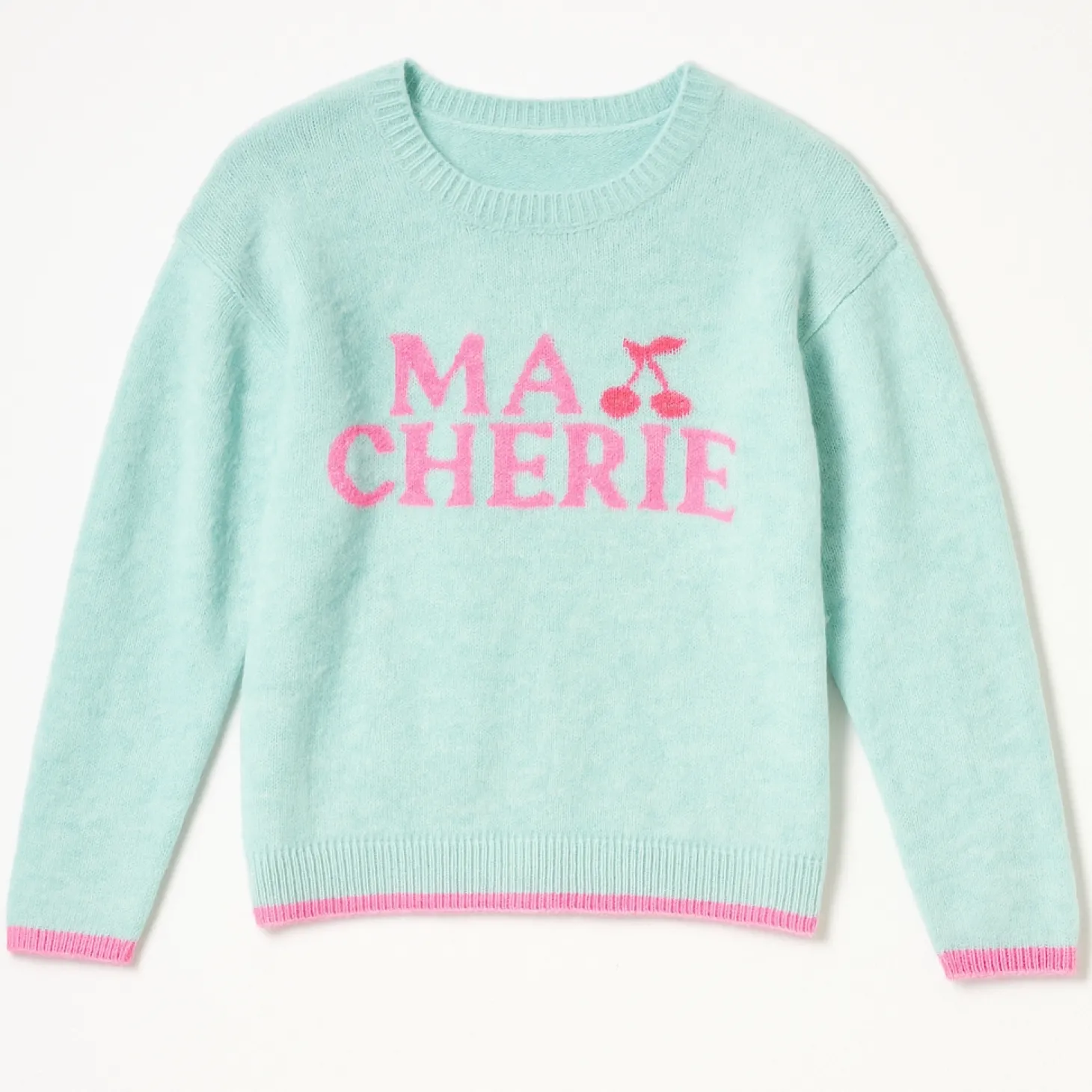 - Design: The minty green knit is plush and stretchy with a relaxed fit, finished with a sweet cherry and pink “ma chérie” graphic. It’s the kind of layer that’s made for slow days and sweet moments at home.
