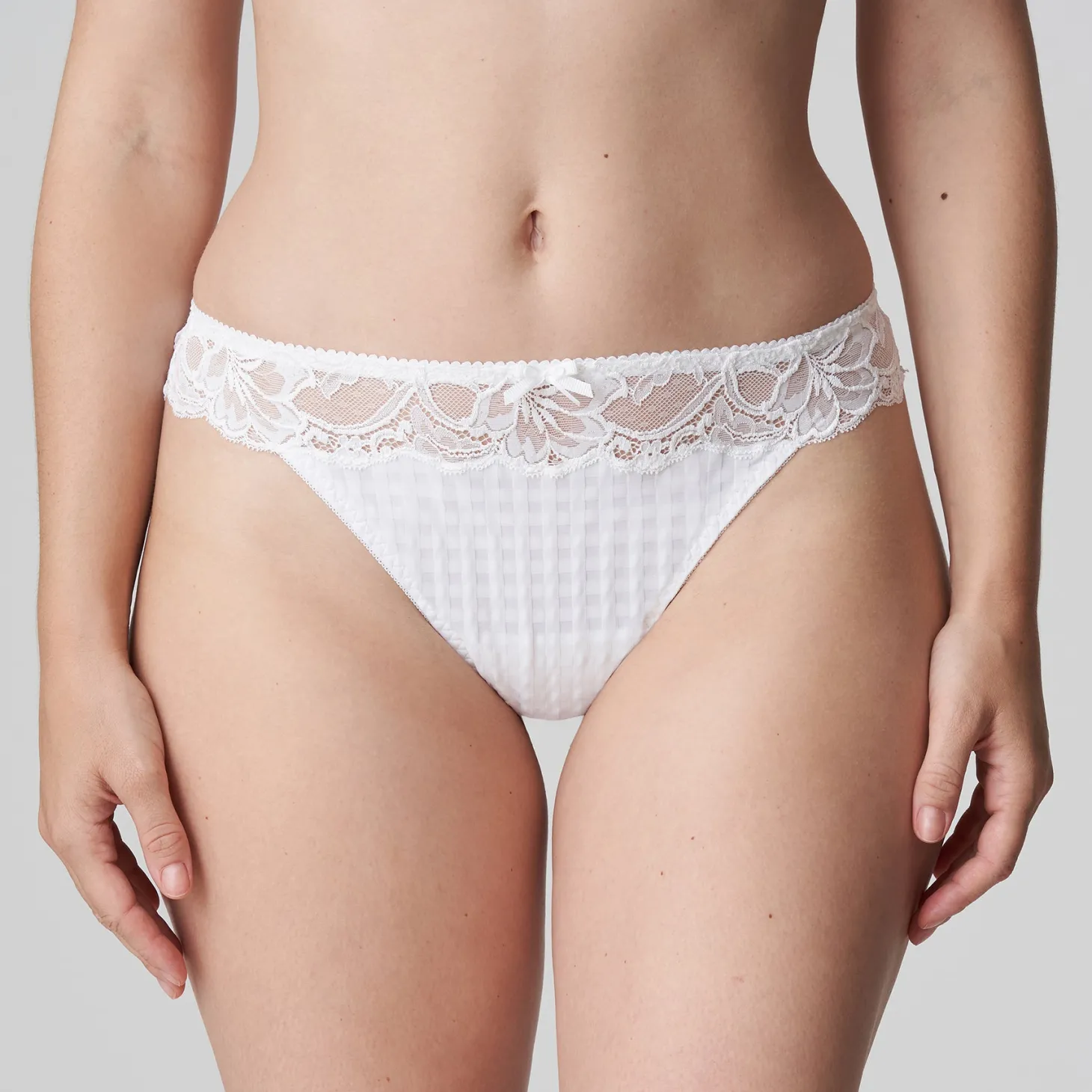 - Design: Thong in a stylish checked fabric with lots of lace at the waist. Sensuous and luxurious!