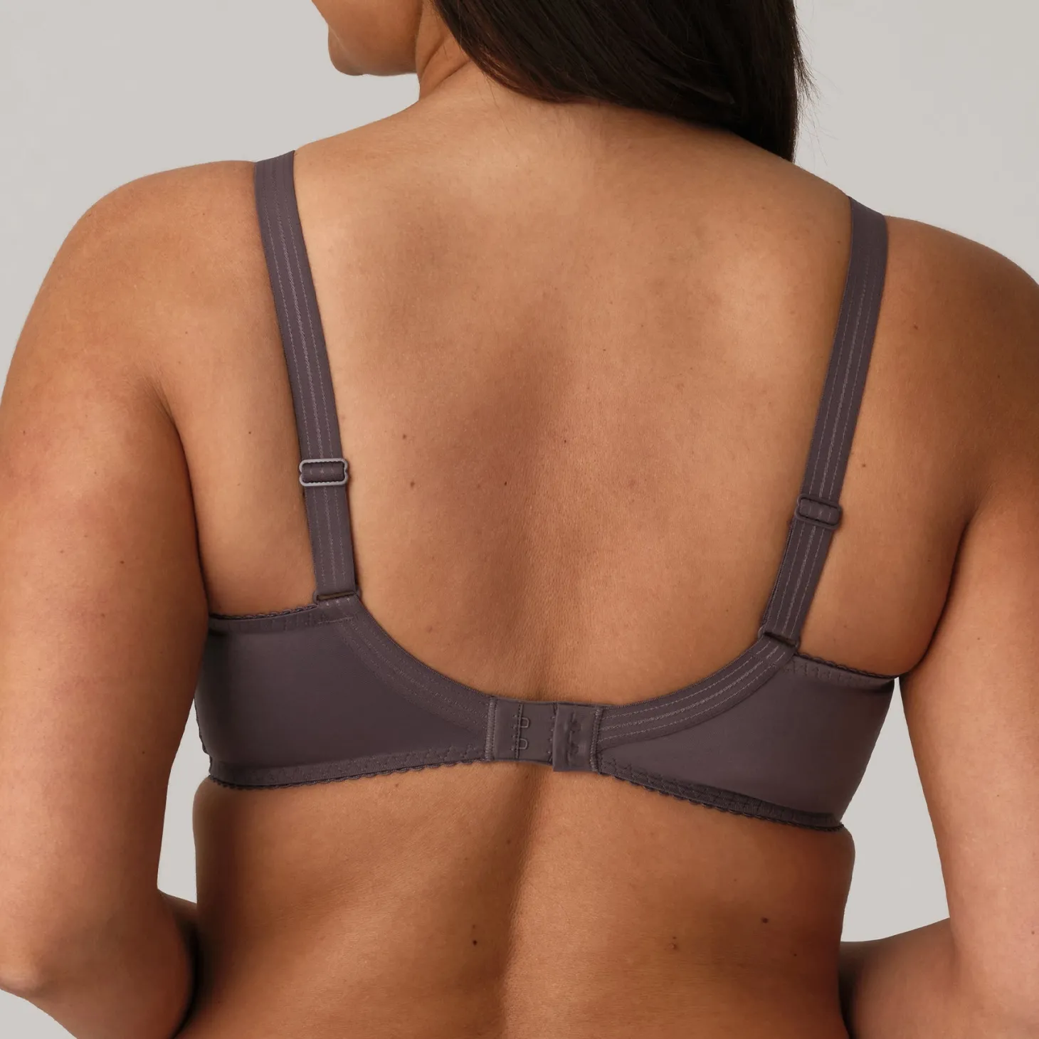 This bra fully encloses the breasts. Eyeshadow is a dark neutral with elegant high-gloss embroidery. This warm make-up shade with a vintage twist can easily be matched to most fall colors.