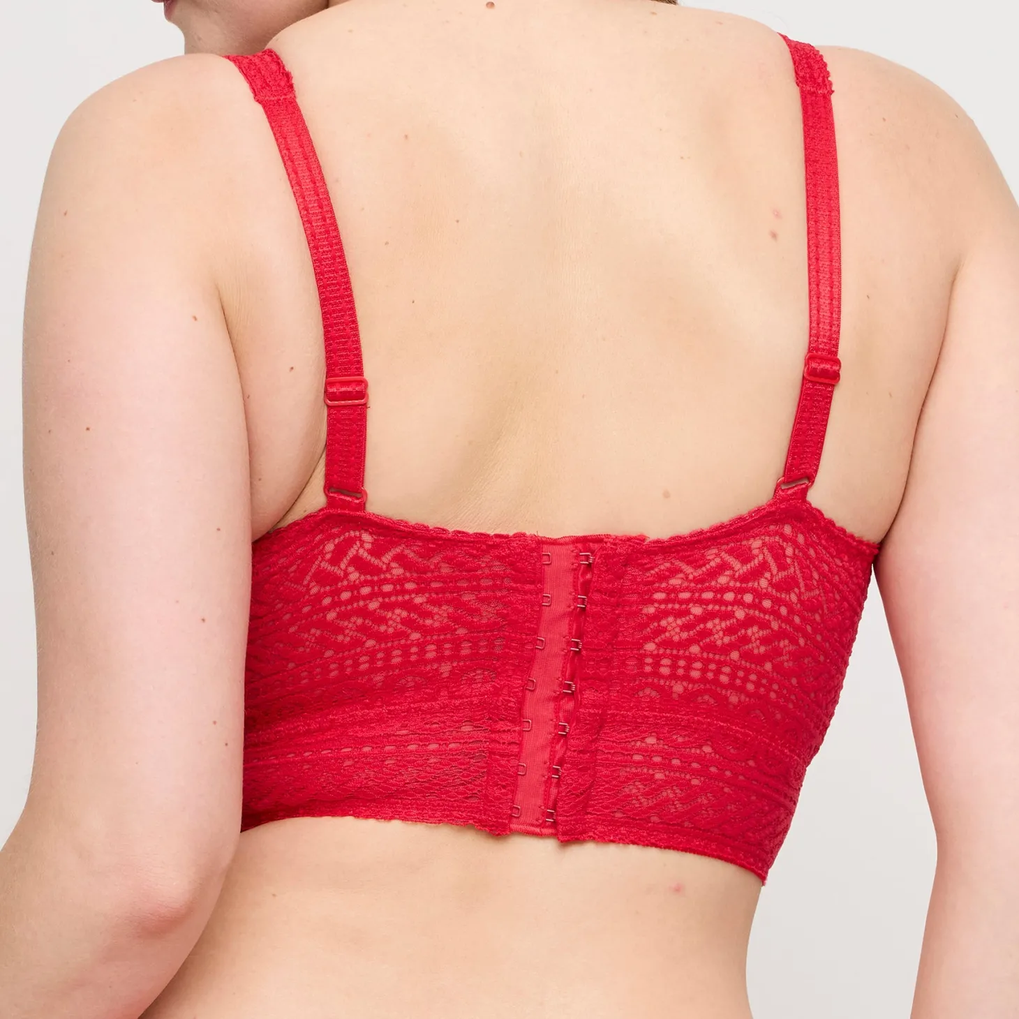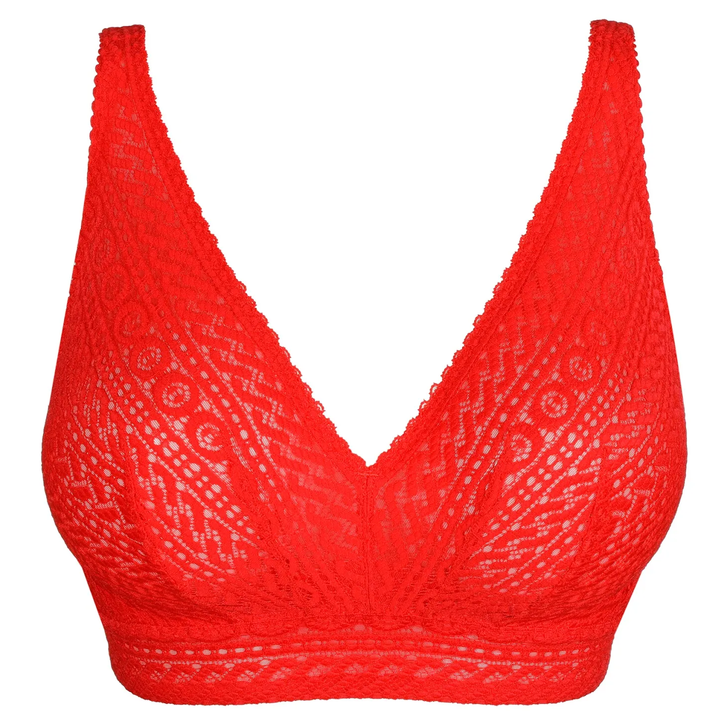 - Design: The sturdy, double-lined cups lift and center the breasts. Comfortable and stylish. Trendy, wireless, triangle bralette in allover lace with a modern, graphic pattern design.